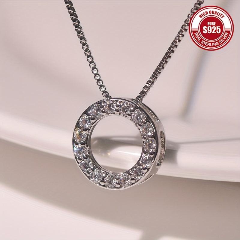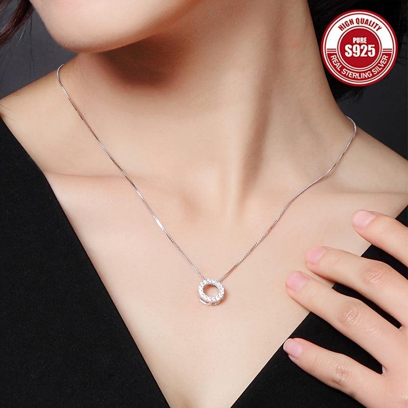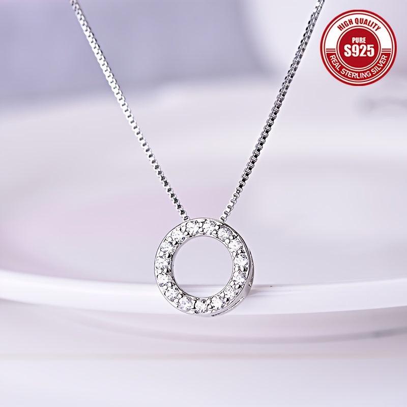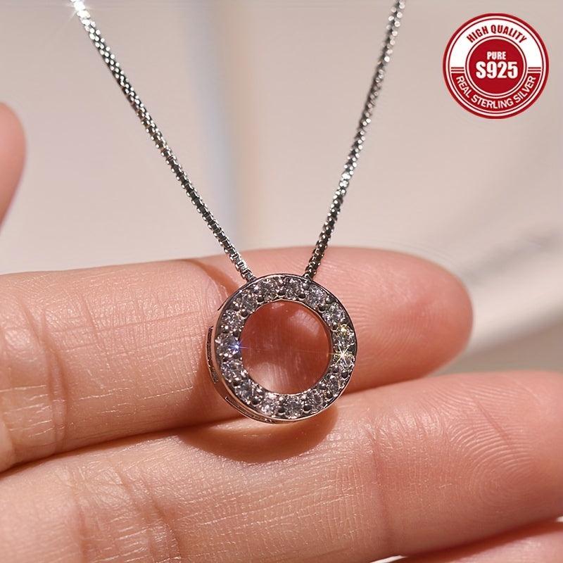 This 925 silver necklace features a delicate hollow circle pendant, perfect for adding a touch of elegance to any outfit. It is low allergy, high-end and versatile.