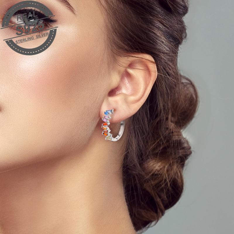These versatile hoop earrings are made of 925 sterling silver with synthetic zirconia stones. They are hypoallergenic, minimalist, and perfect for daily wear. No plating is used, ensuring long-lasting quality.