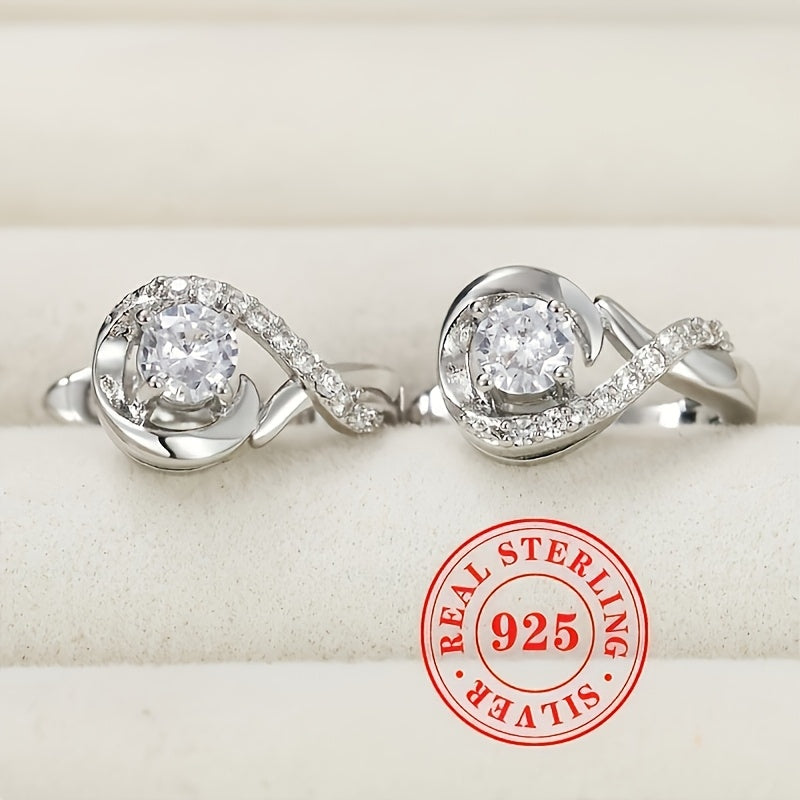 Elegant and lightweight 925 silver hoop earrings with sparkling zirconia inlays. Perfect for April birthstones. Hypoallergenic and sexy design.