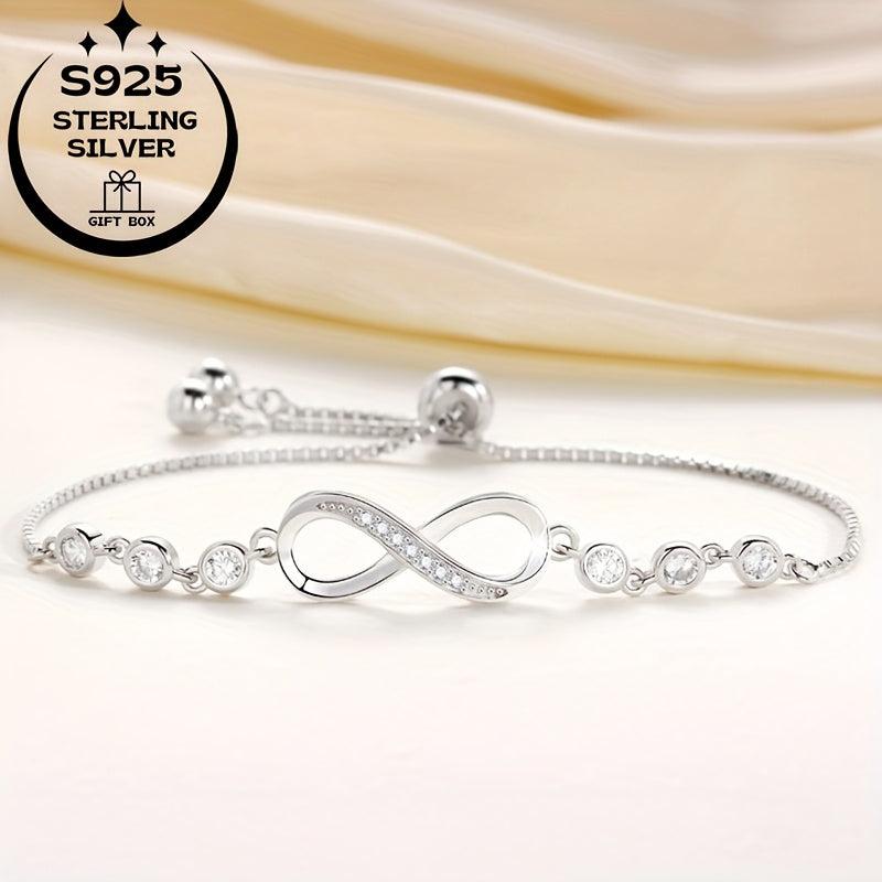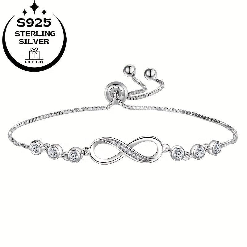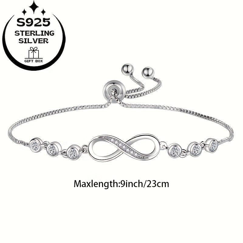 This stunning bracelet is crafted from 925 sterling silver and features an infinity symbol design adorned with sparkling synthetic cubic zirconia stones. Perfect as an anniversary or birthday gift!