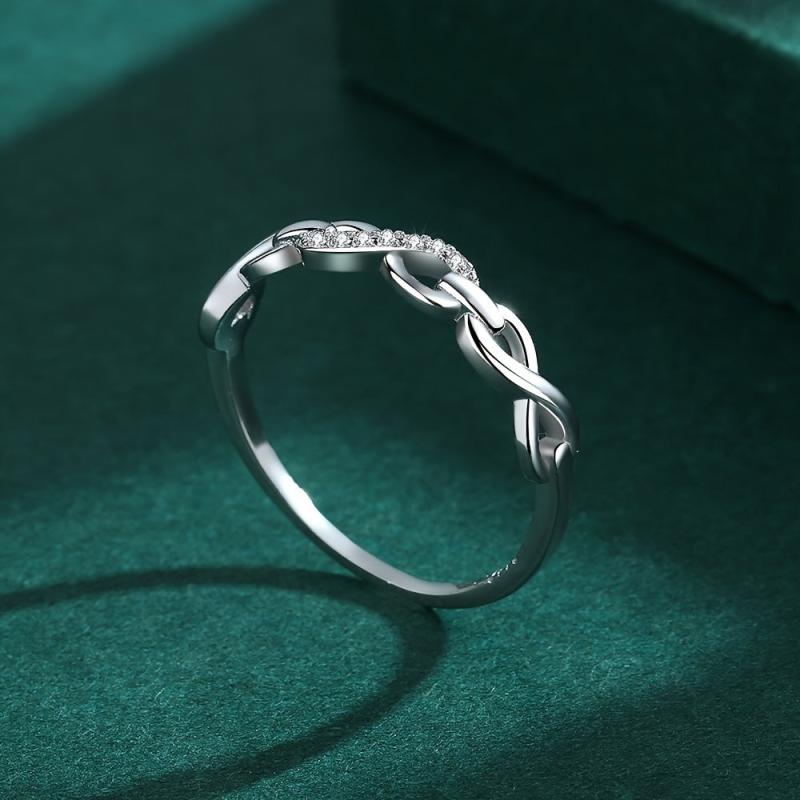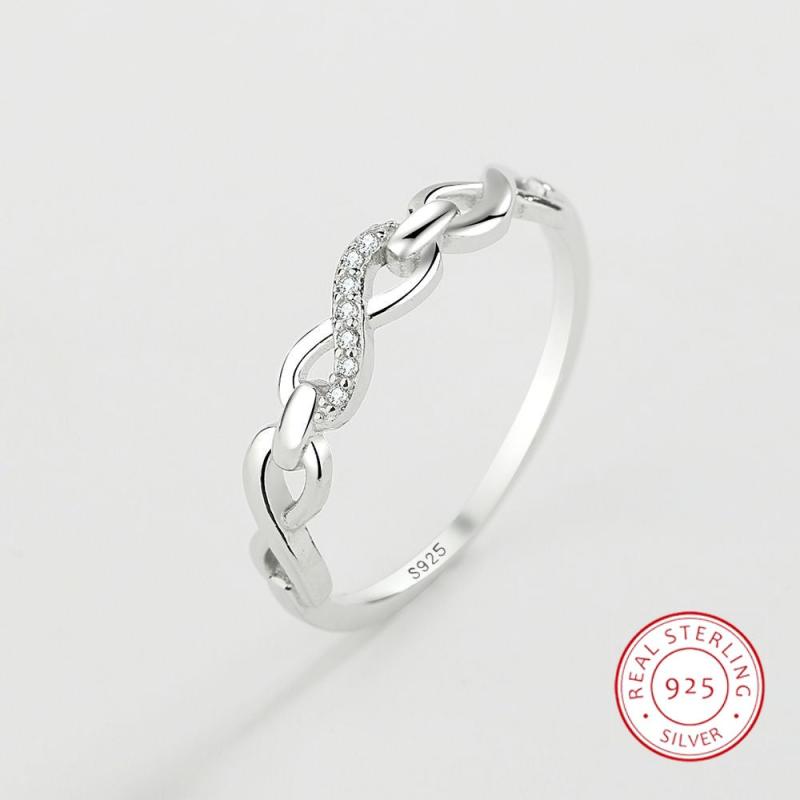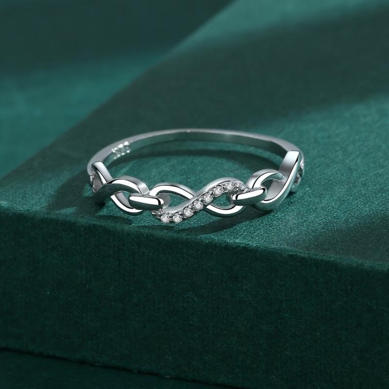 This stunning 925 sterling silver infinity symbol ring features sparkling zircon stones. It makes a perfect gift for women and girls.