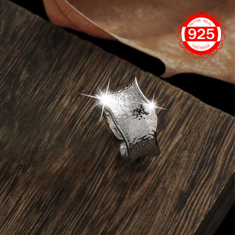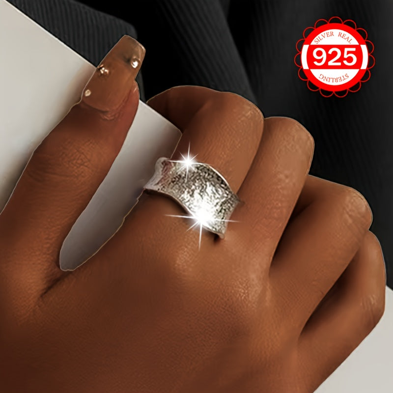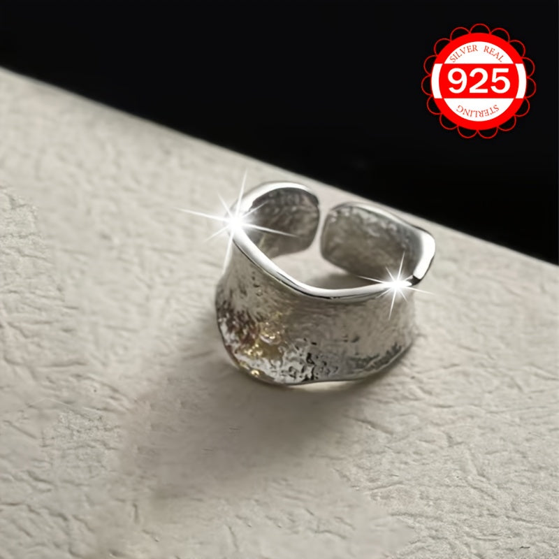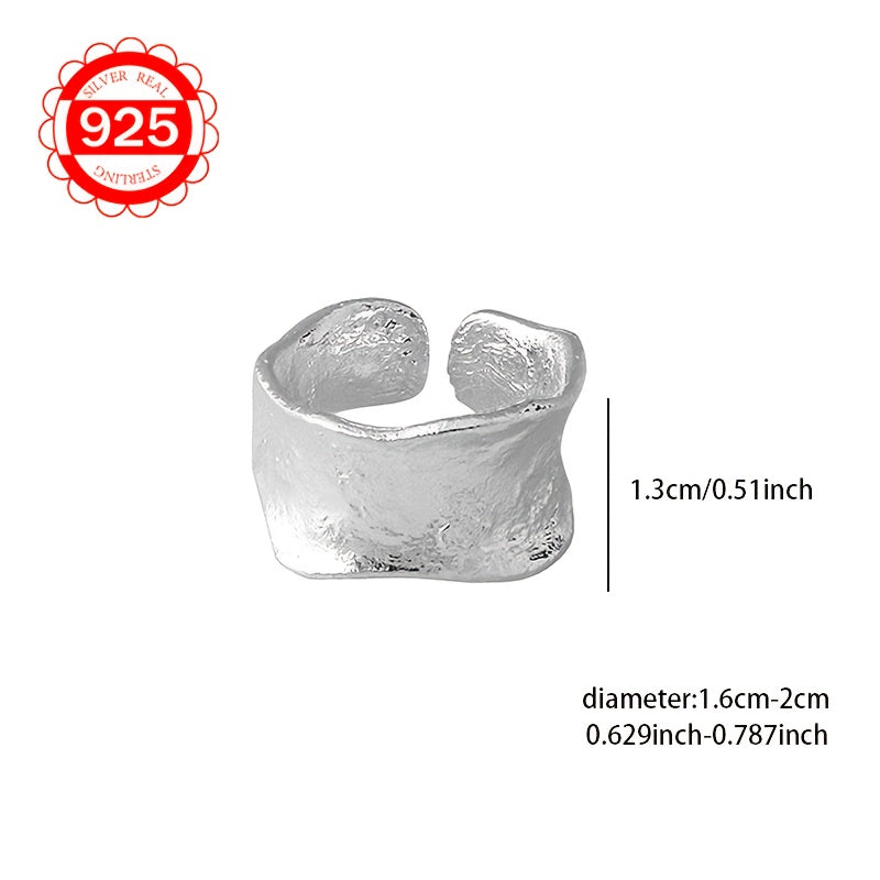 This minimalist niche ring is made of 925 silver, perfect for index or pinky finger. It features an irregular concave-convex design with a foil fingerprint motif.