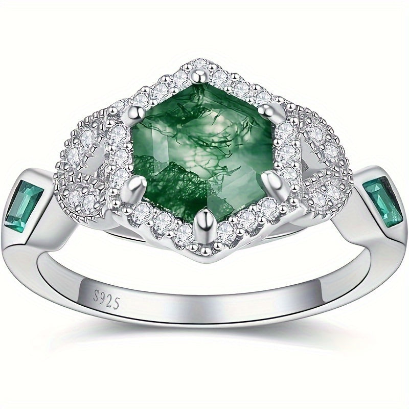 Elegant and seductive 925 silver plated ring handcrafted with natural water grass agate. Perfect for weddings, parties, and anniversaries.