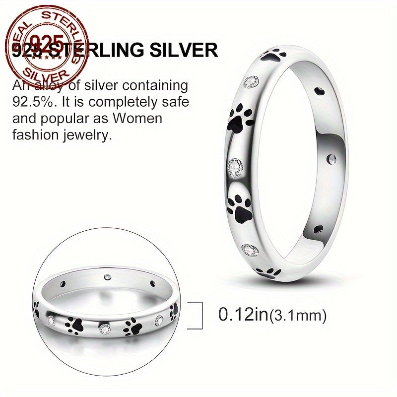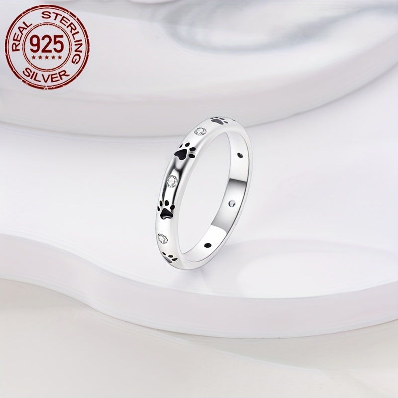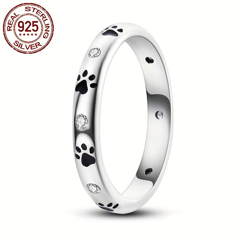 925 Silver Paw Print Ring with Zirconia for Women and Girls