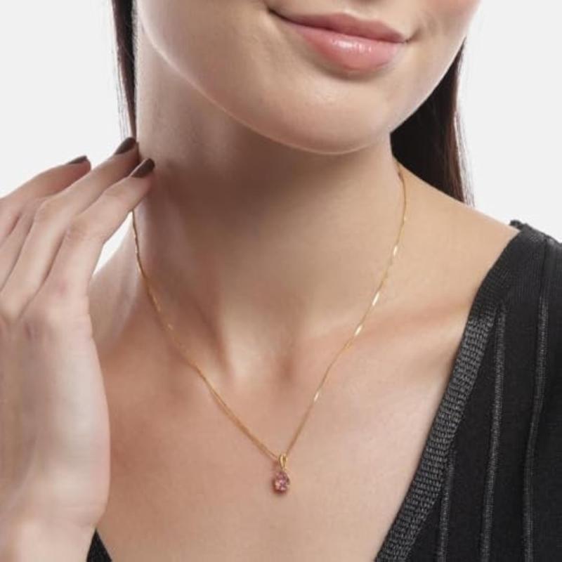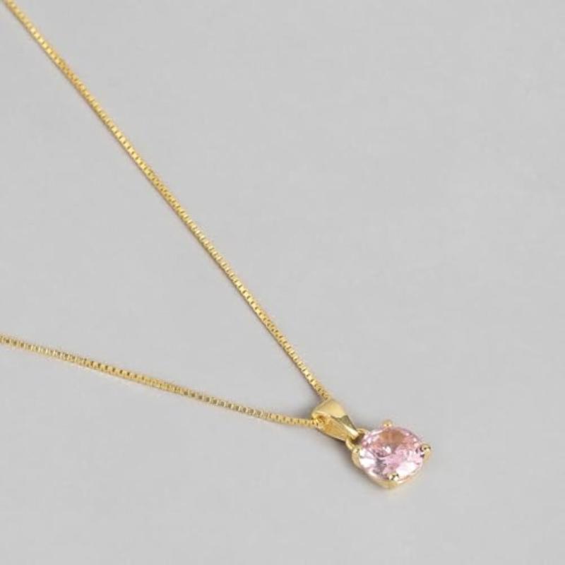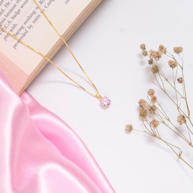 Beautiful circular pink solitaire necklace made of 925 sterling silver with a plated finish. A perfect gift for girls with a mother's stamp.