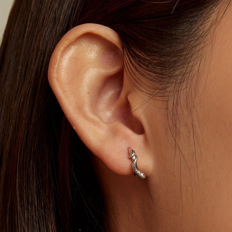 Add a touch of elegance with these 925 sterling silver snake ear buckle hoop earrings featuring green zirconium gemstones. It makes a perfect gift for any occasion.