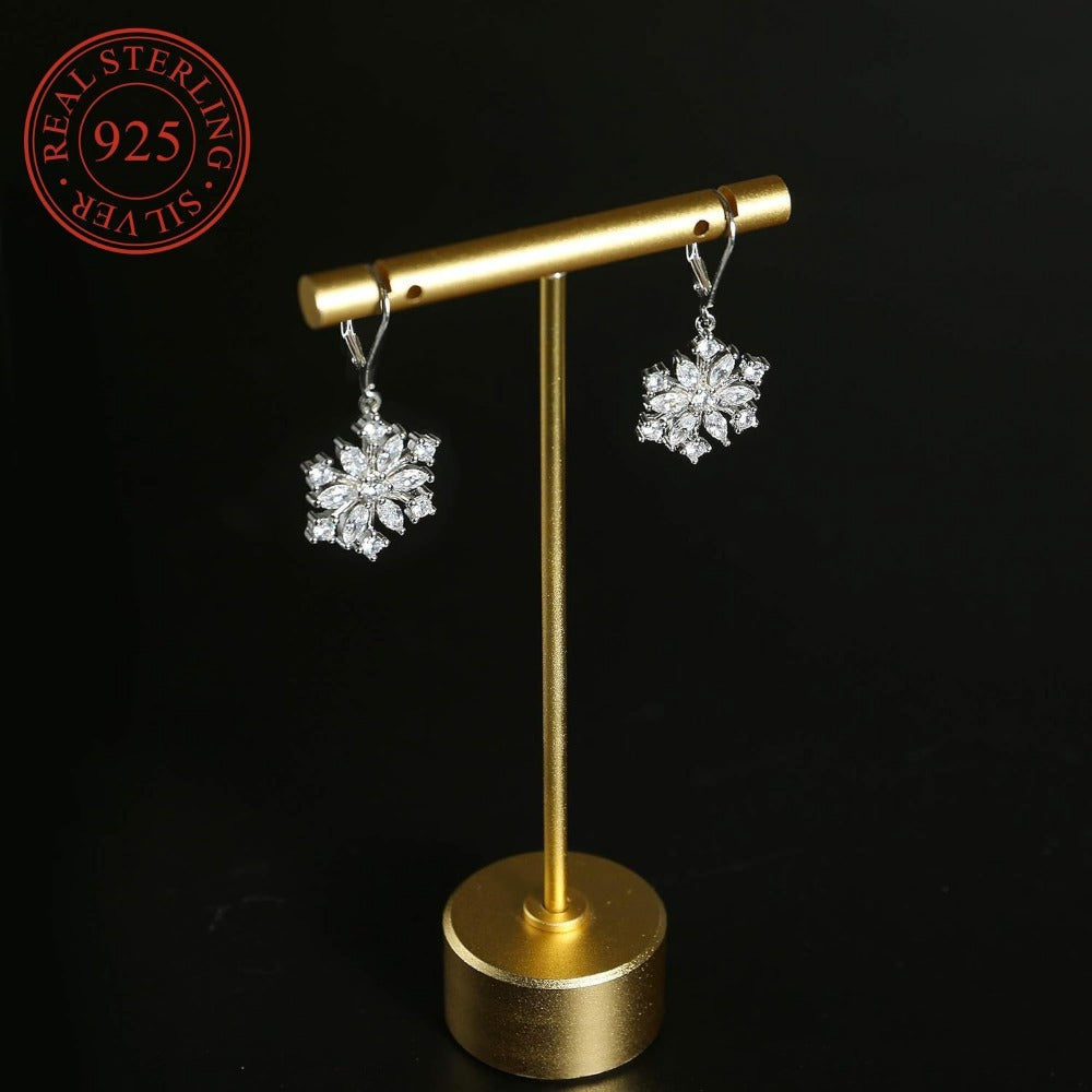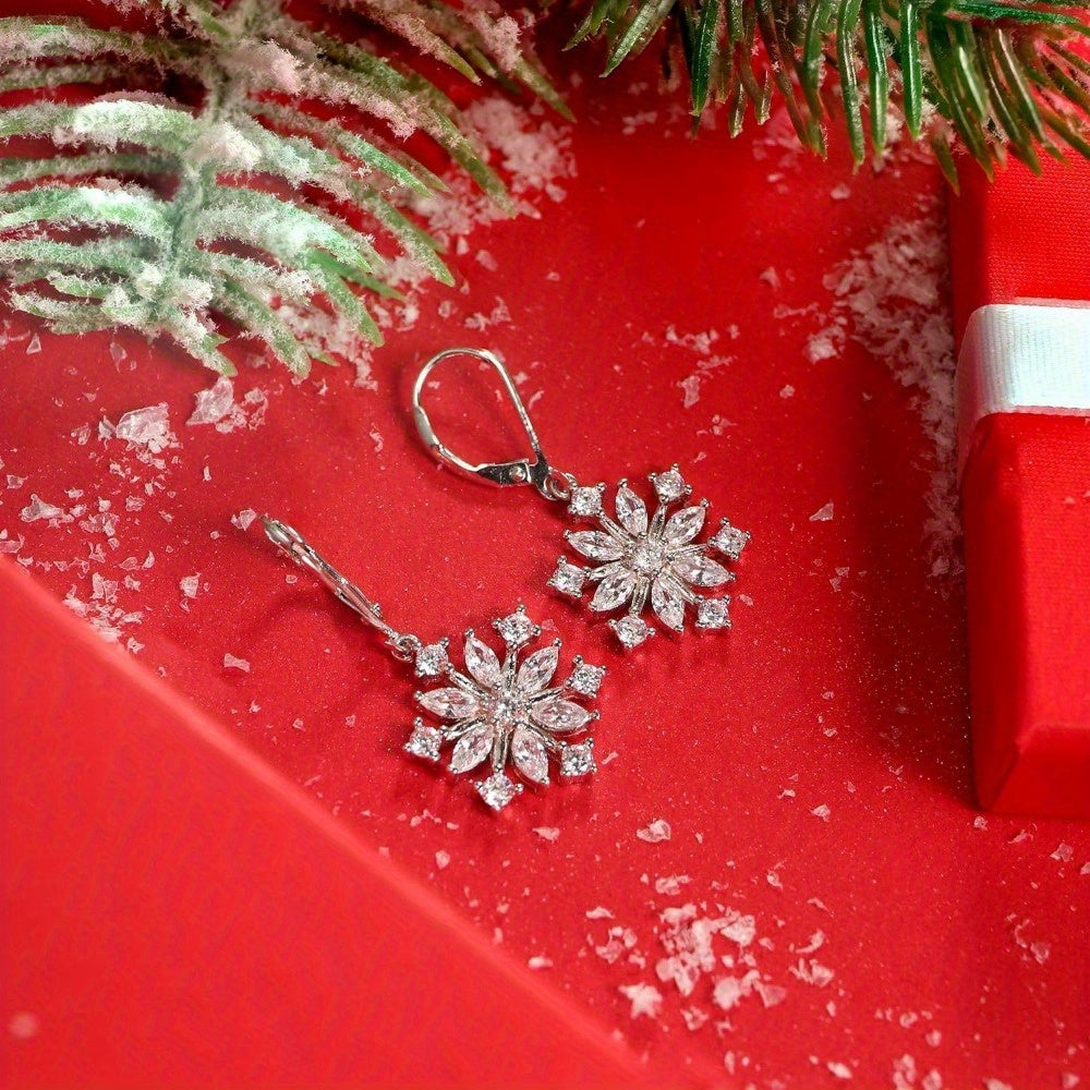 Add a touch of winter magic to your look with these elegant snowflake drop earrings. Perfect for the holiday season or Christmas festivities.
