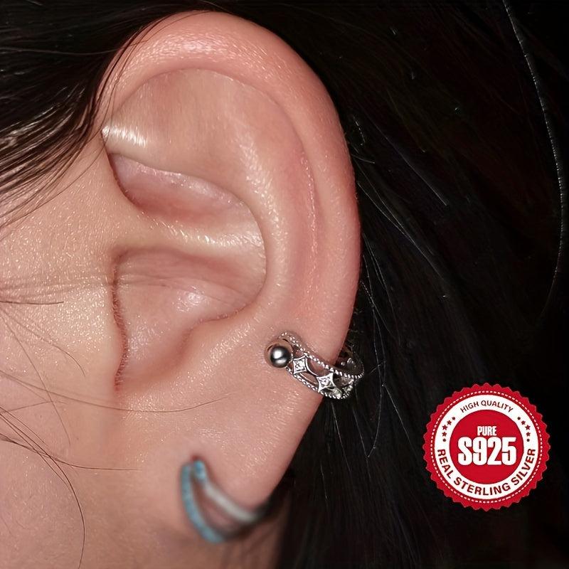 Stay stylish with these fashionable 925 silver star ear studs. Made with a hollow design, these ear studs are perfect for everyday wear. Each pack contains a single ear stud, making it easy to mix and match for a unique look.