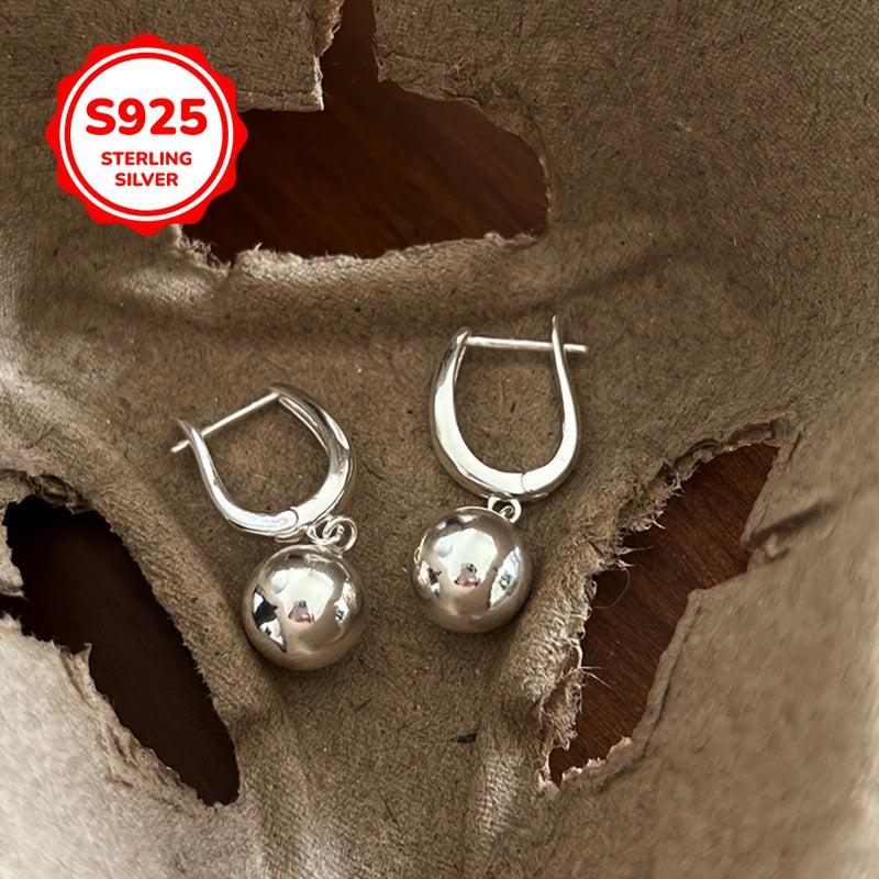 These stunning 925 silver earrings are hypoallergenic and feature a glossy round bead dangling from a U-shaped design. Perfect for couples or bridesmaids, these earrings are versatile for casual attire, weddings, and more.