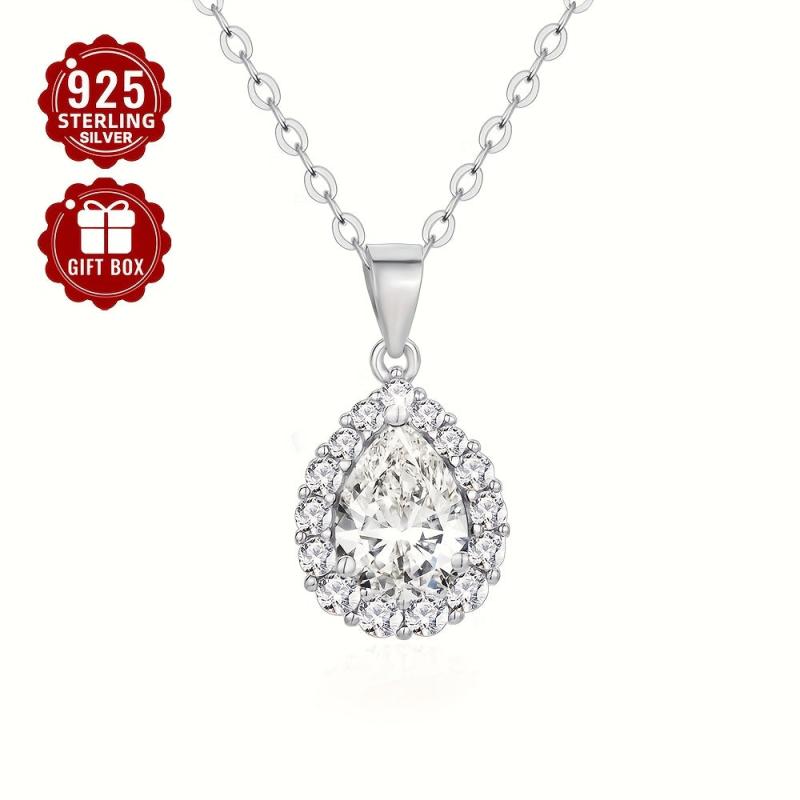 Chic teardrop pendant necklace made of quality sterling silver with synthetic cubic zirconia. Perfect for daily wear or special occasions.