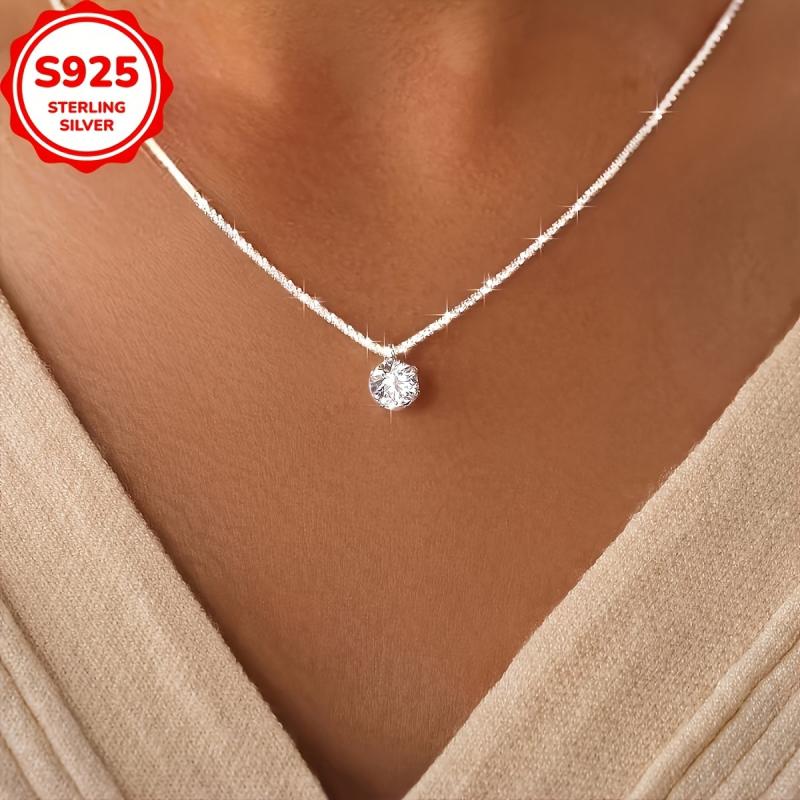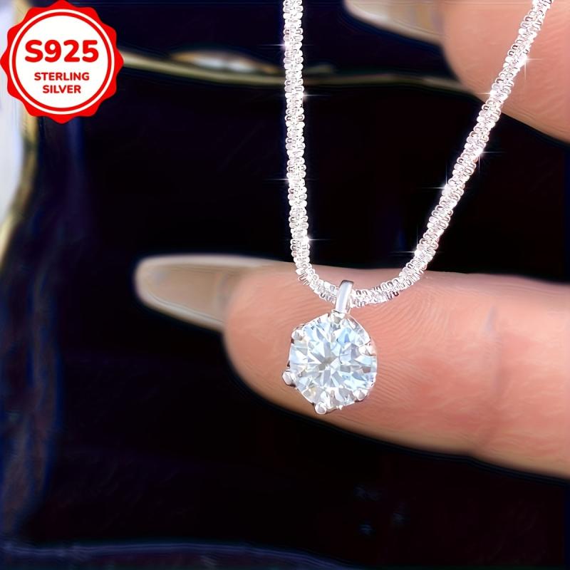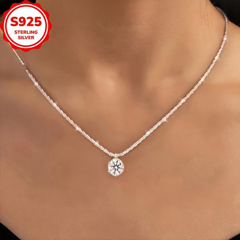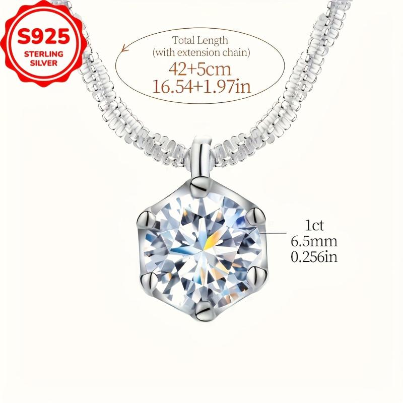 925 Silver Vintage Women's Moissanite Pendant Necklace