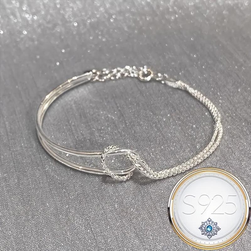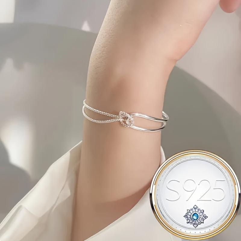 Elevate your look with this elegant double layer knot splicing bracelet made of 925 silver. The minimalist style adds a touch of sophistication to any outfit.