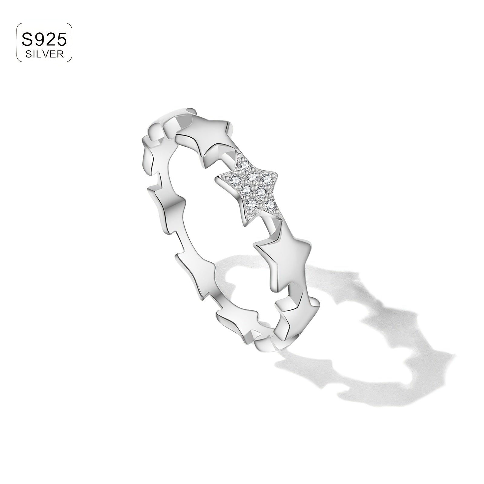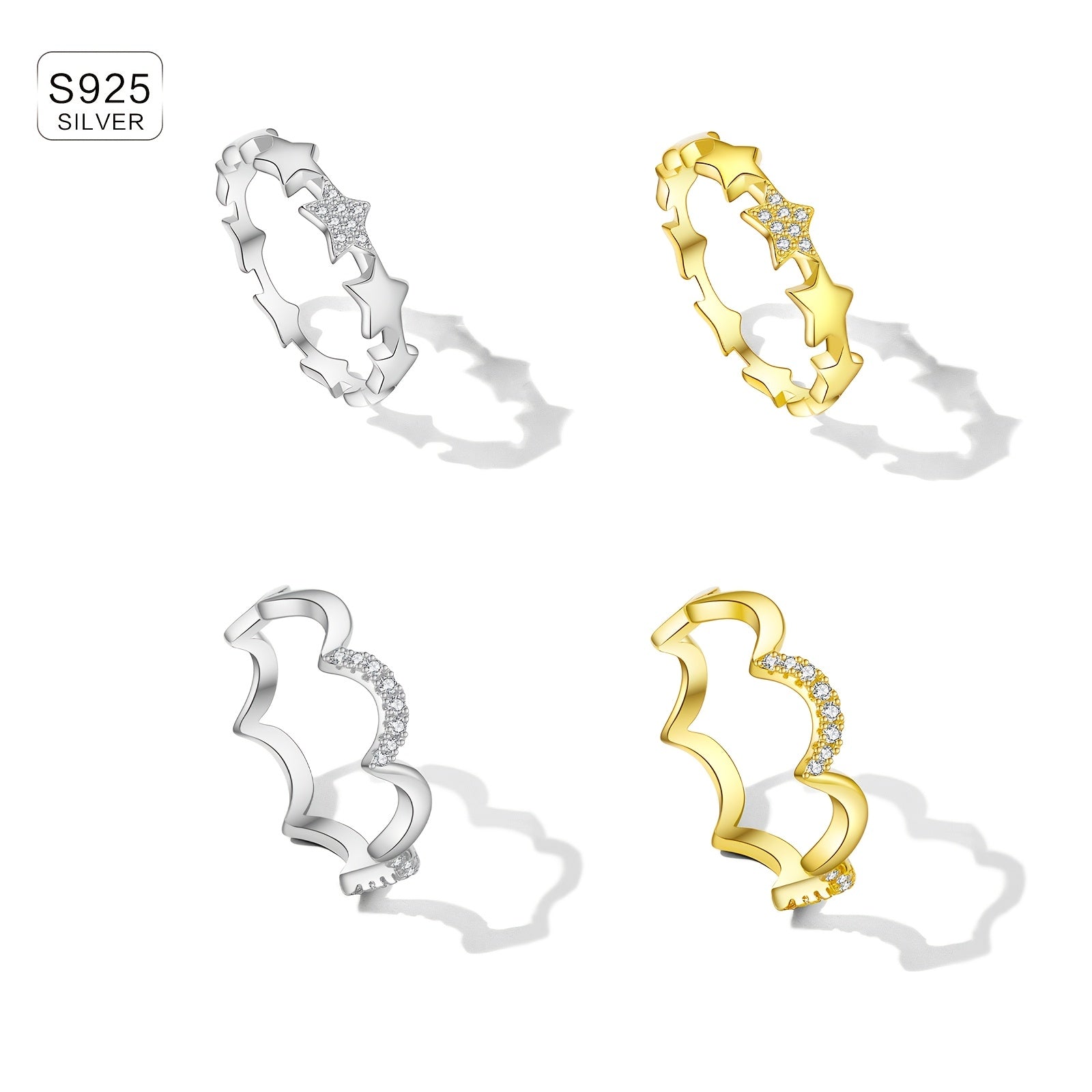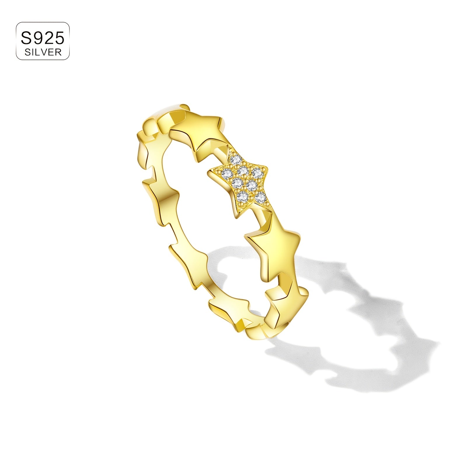 Add a touch of celestial charm with this stunning couple's ring. Crafted from 925 sterling silver and adorned with sparkling synthetic zirconia, this ring features a star and moon pattern with an 18k golden plated finish.