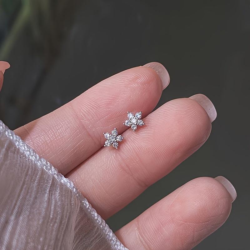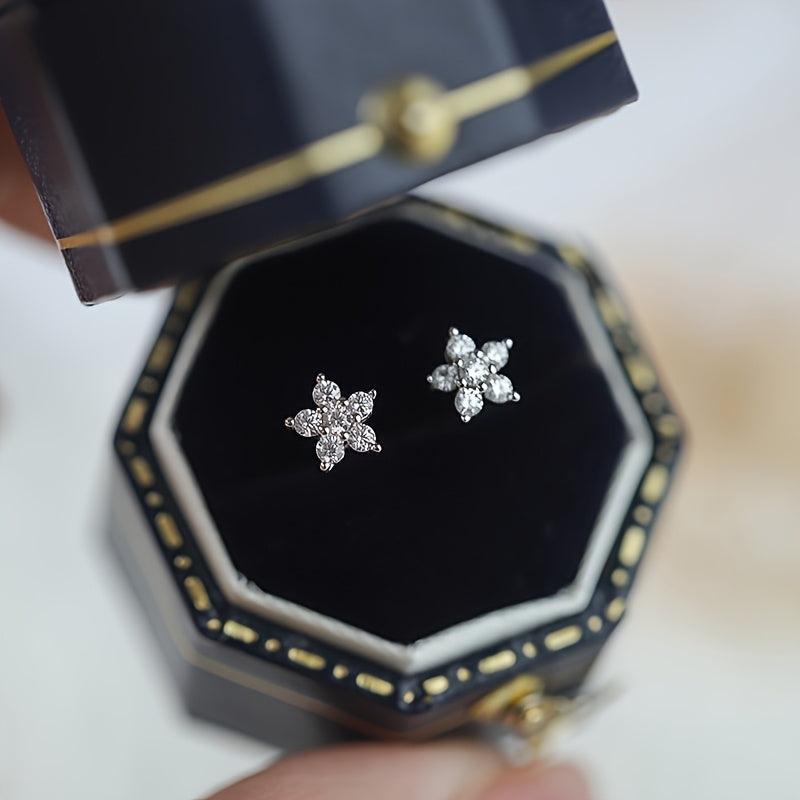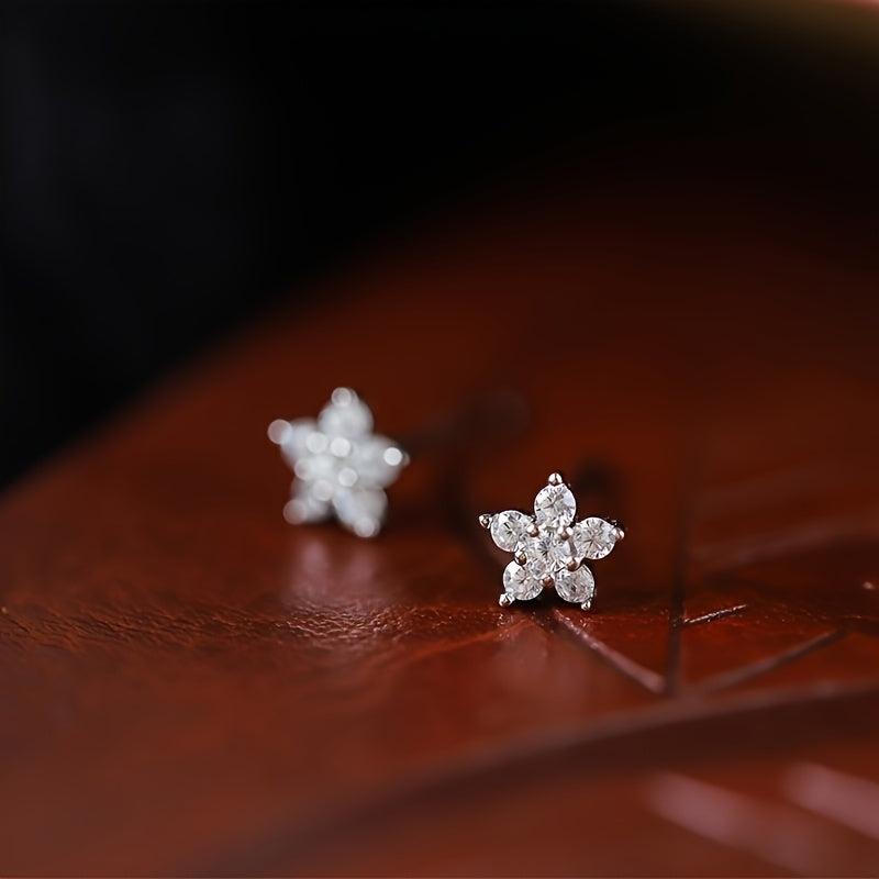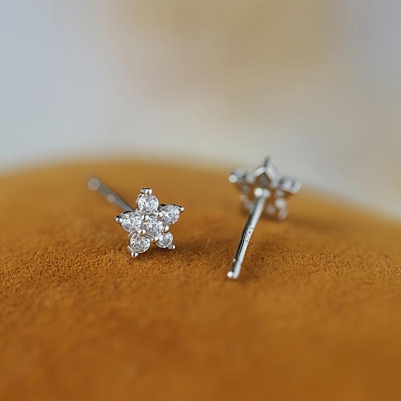 Add a touch of elegance with these small plum blossom earrings featuring micro inlaid zirconia stones.