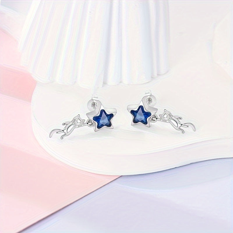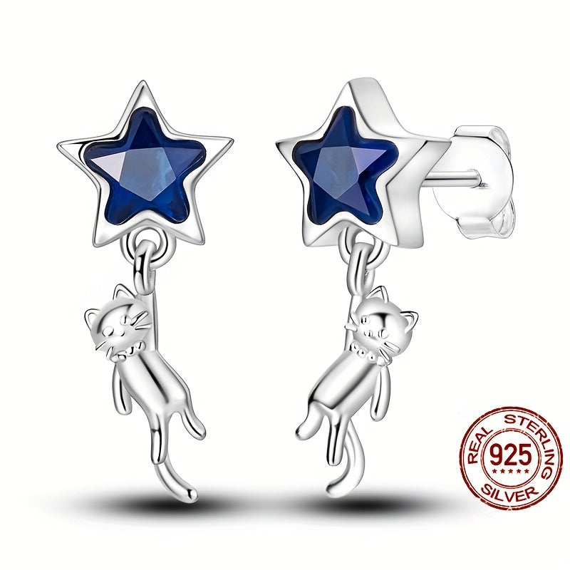 Add a touch of elegance to any outfit with these modern and stylish 925 sterling silver star cat earrings. Perfect for women who love unique jewelry pieces.