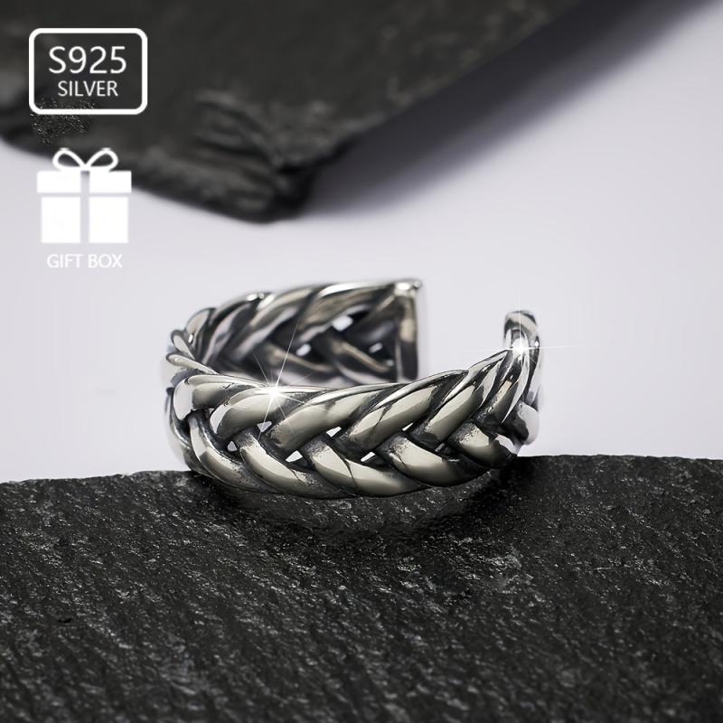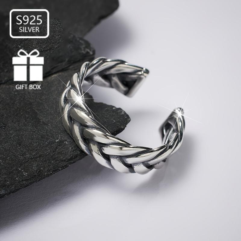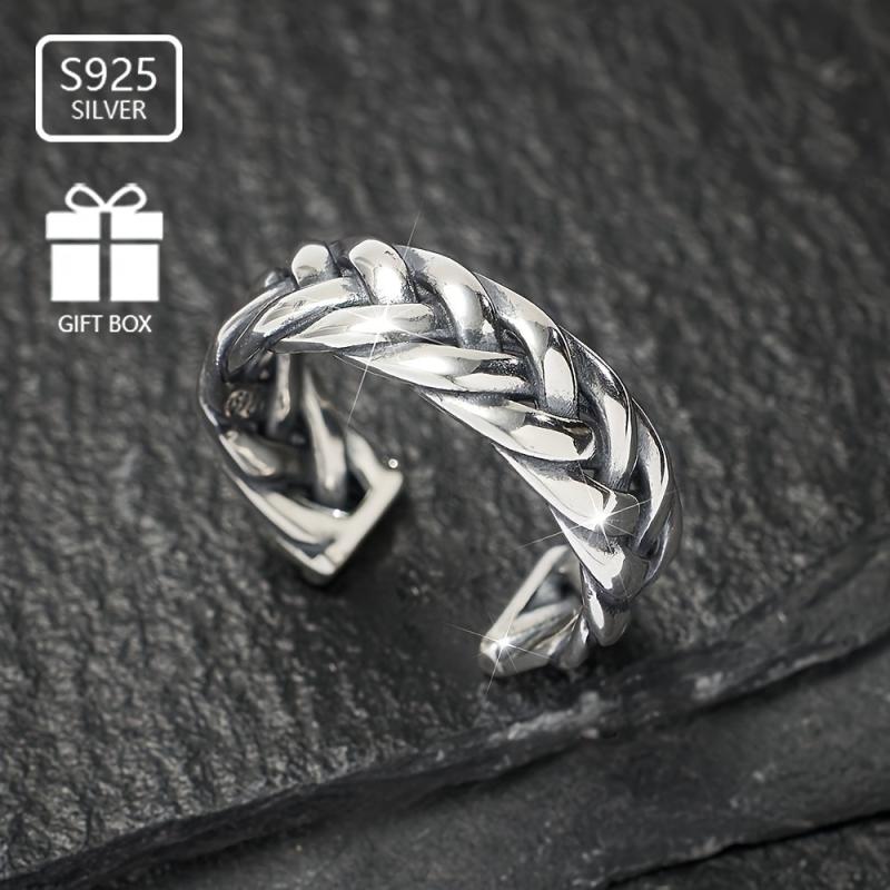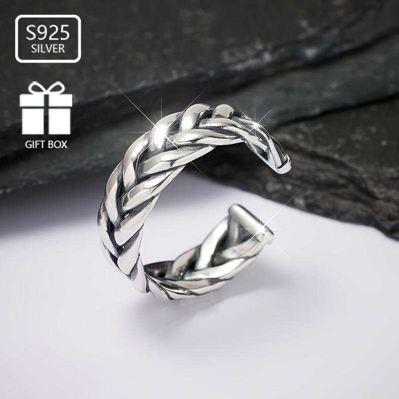 925 Sterling Silver Couple Braided Rope Ring Open Ring For Men And Women