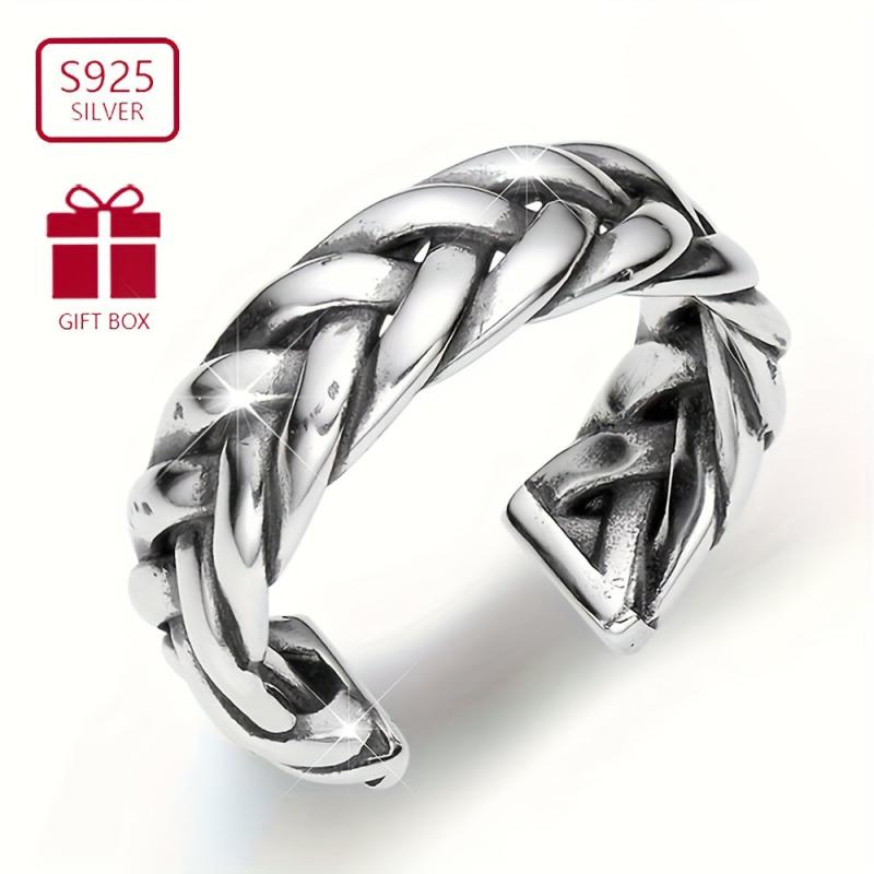 This vintage aged geometric ring is made of 925 sterling silver, featuring a braided rope design. Perfect for holiday, birthday, or anniversary gifts.