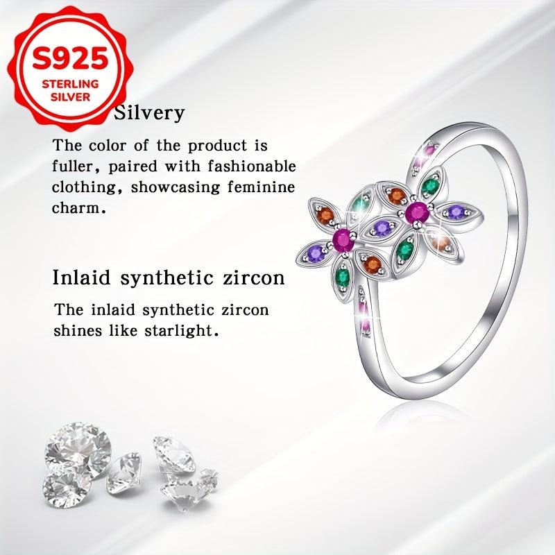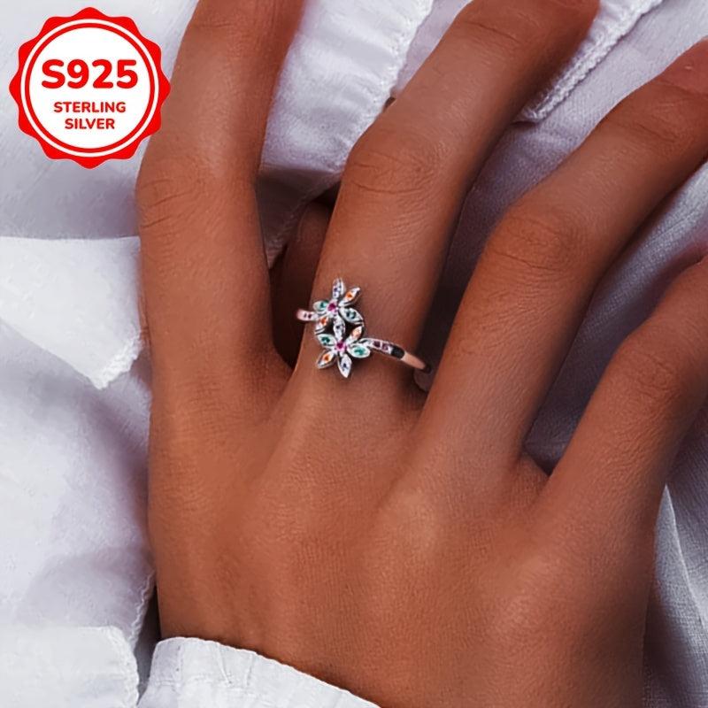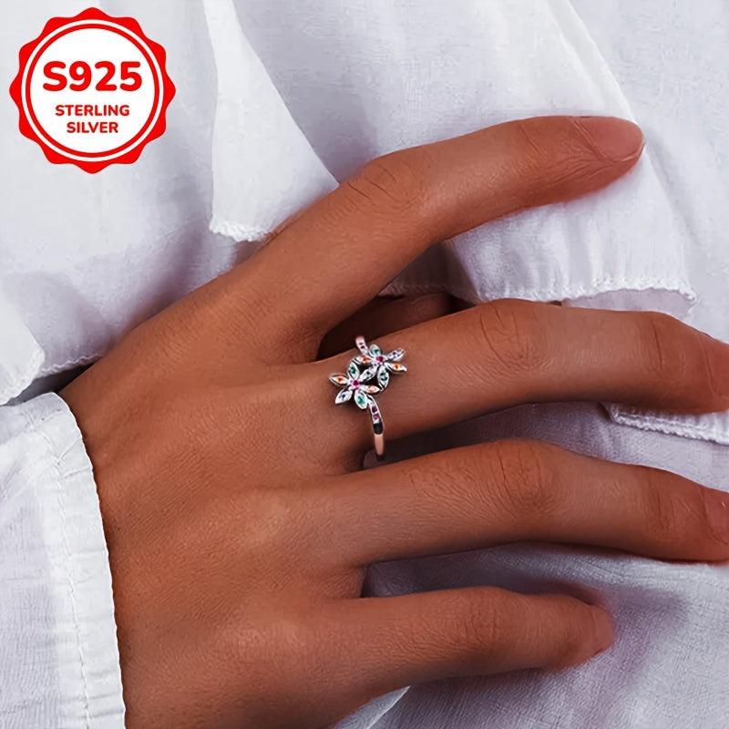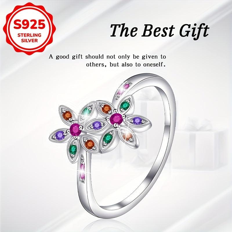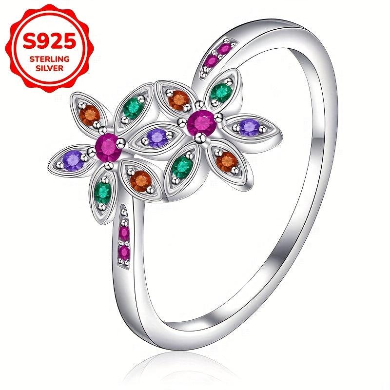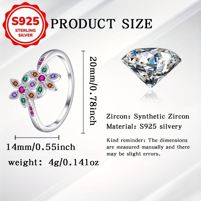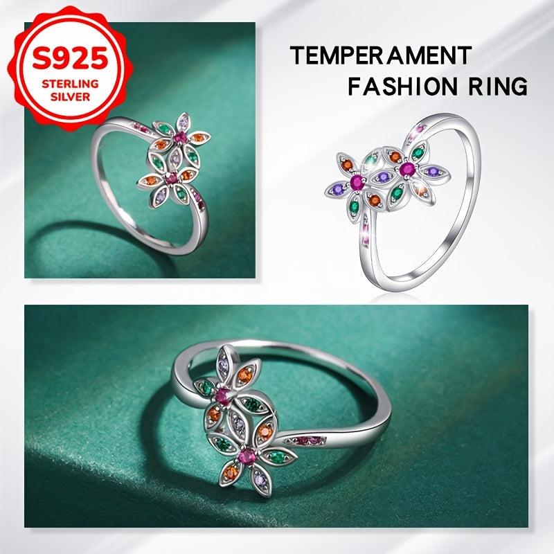 This exquisite ring features a beautiful floral design with colorful cubic zirconia stones, making it perfect for daily wear, banquets, parties, and special occasions.