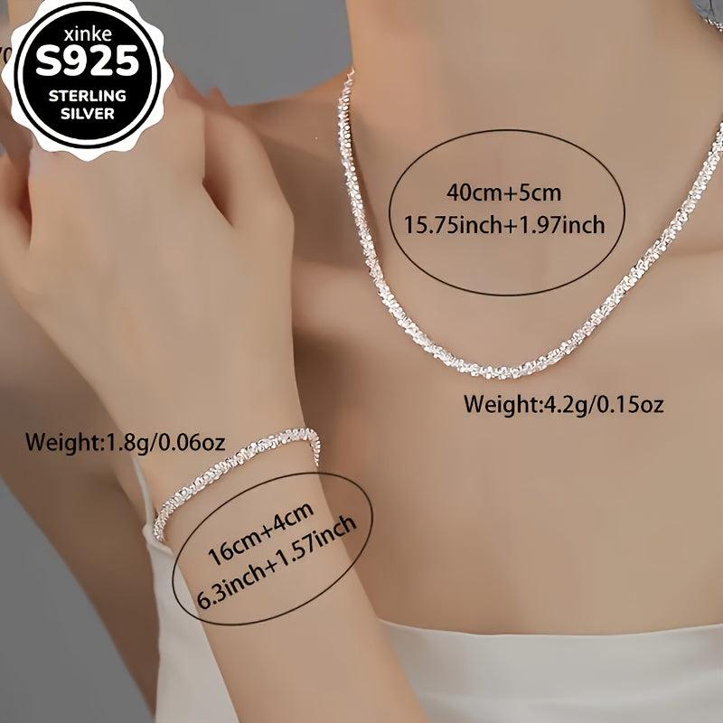 This exquisite 925 Sterling Silver jewelry set includes a necklace and a bracelet, making it a perfect gift for weddings, birthdays, or Valentine's Day.
