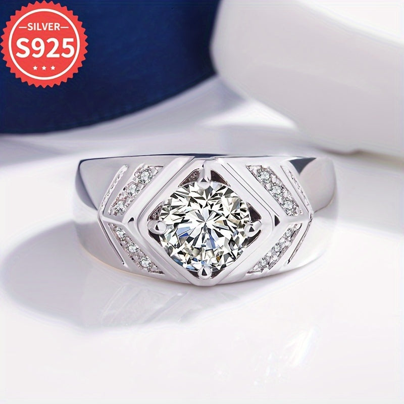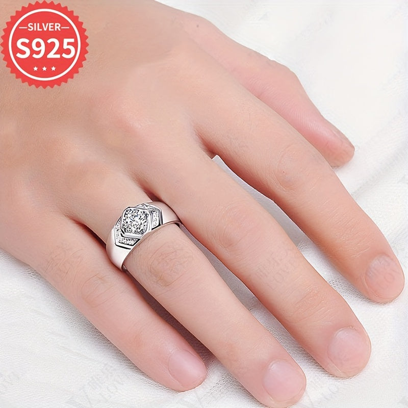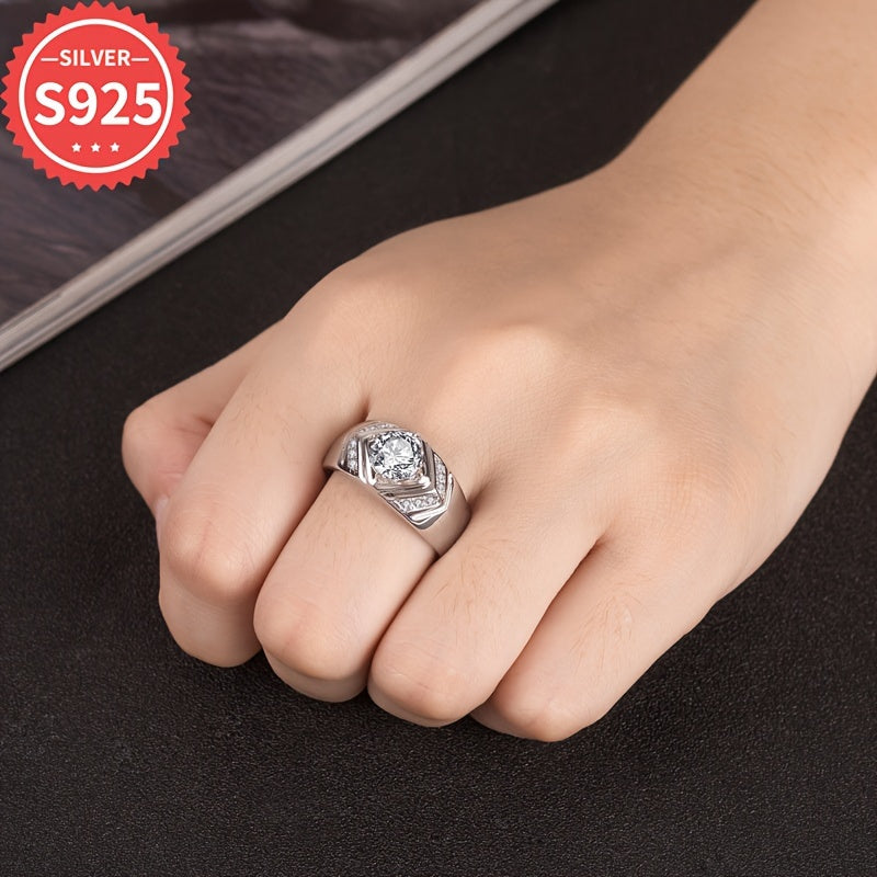 This stylish men's engagement ring is made of hypoallergenic 925 sterling silver with an open band design. It features a charming arrow and sparkling cubic zirconia accents for a fashionable look.