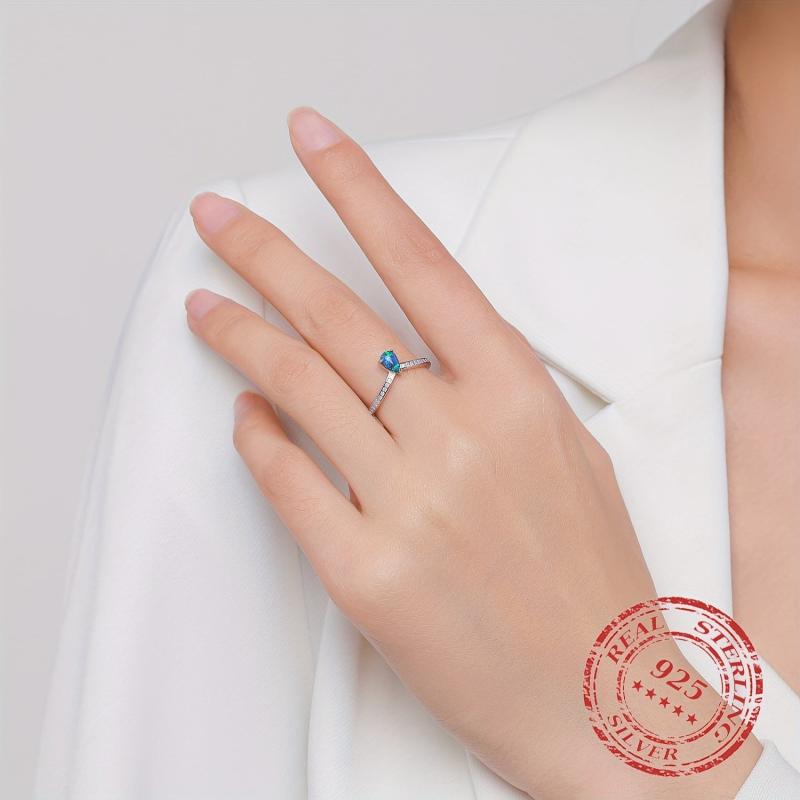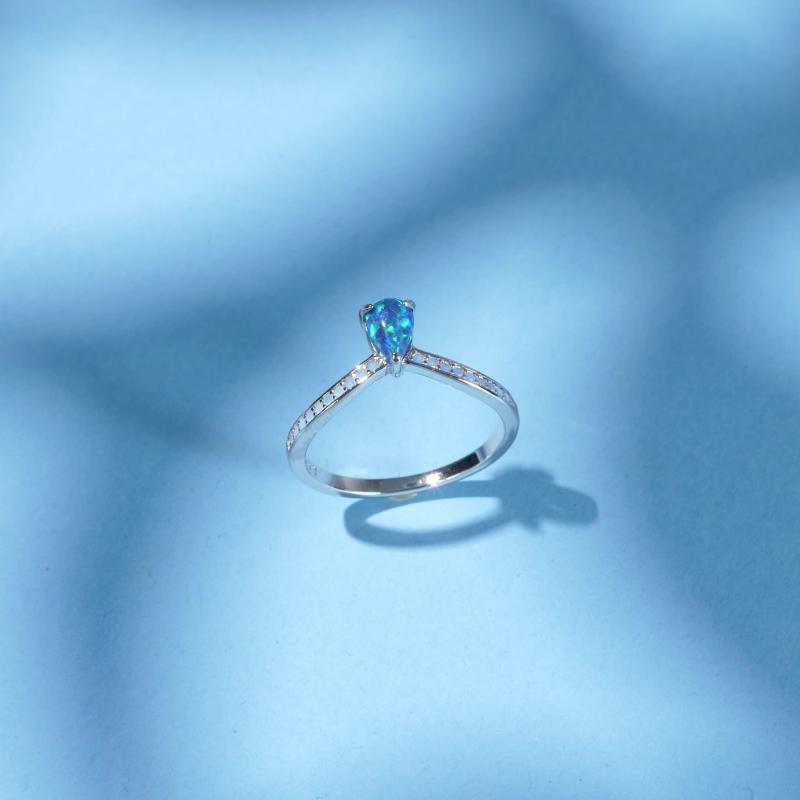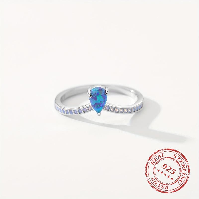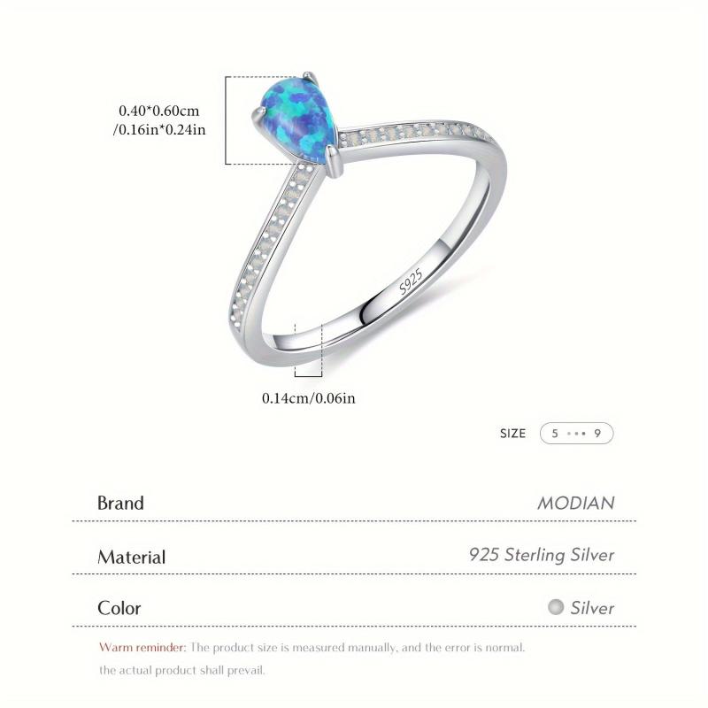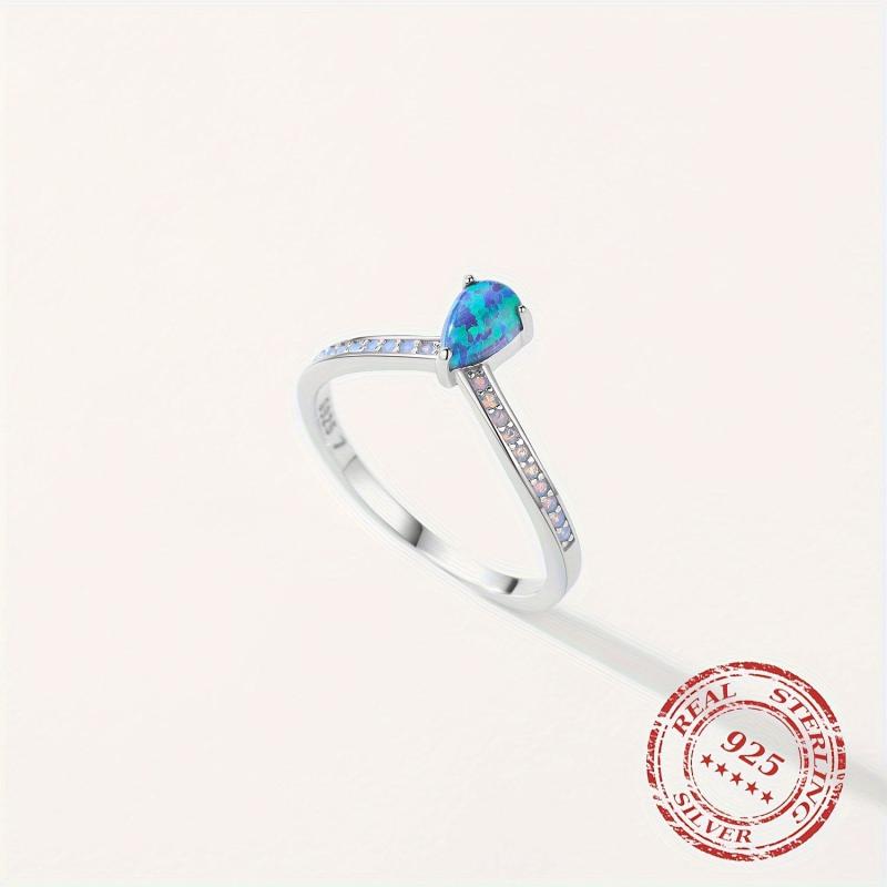 This stunning ring features a pear-shaped opal set in 925 sterling silver, making it perfect for weddings and vacations. Hypoallergenic and lightweight at 1.50g, this droplet-shaped ring is ideal for any occasion.