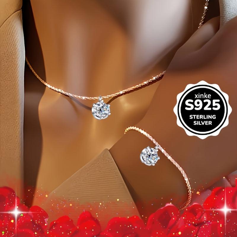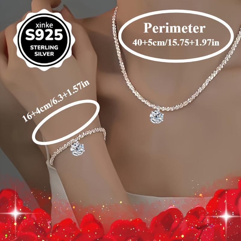 Elegant set featuring a sparkling coconut snowflake chain necklace and a rhinestone bracelet. Crafted from high-quality 925 sterling silver with synthetic zirconia stones.