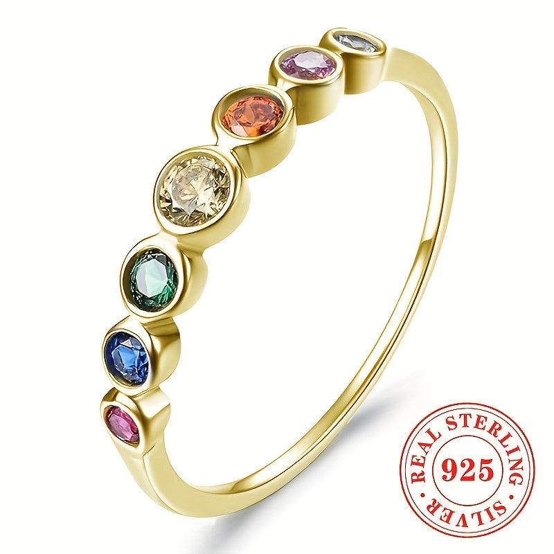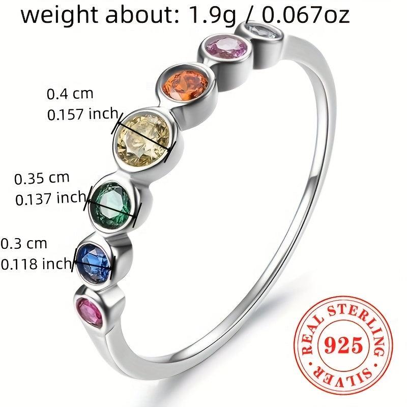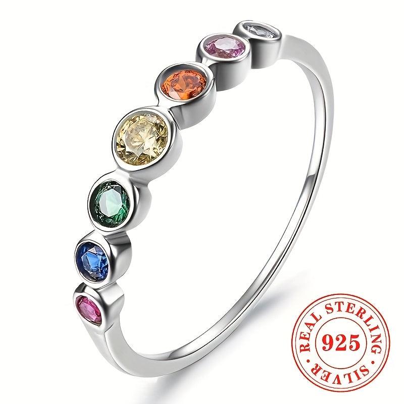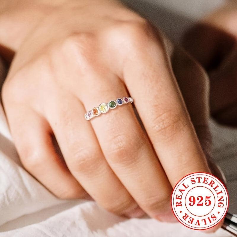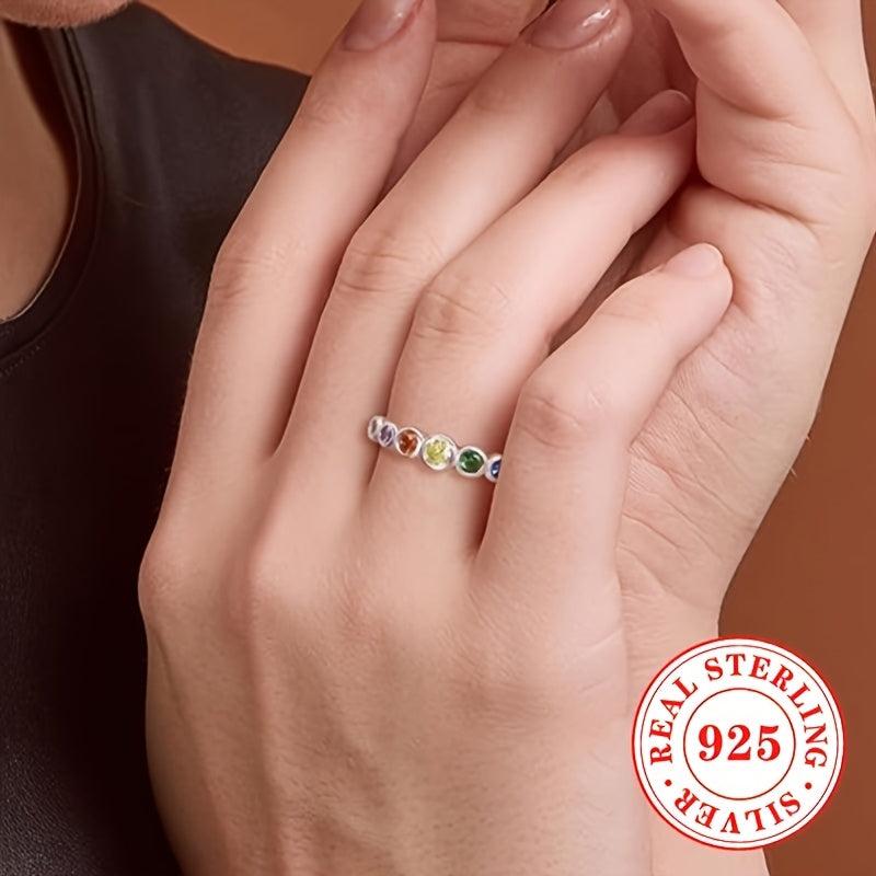 925 Sterling Silver Ring with Colorful Zirconia - Women's Party Jewelry