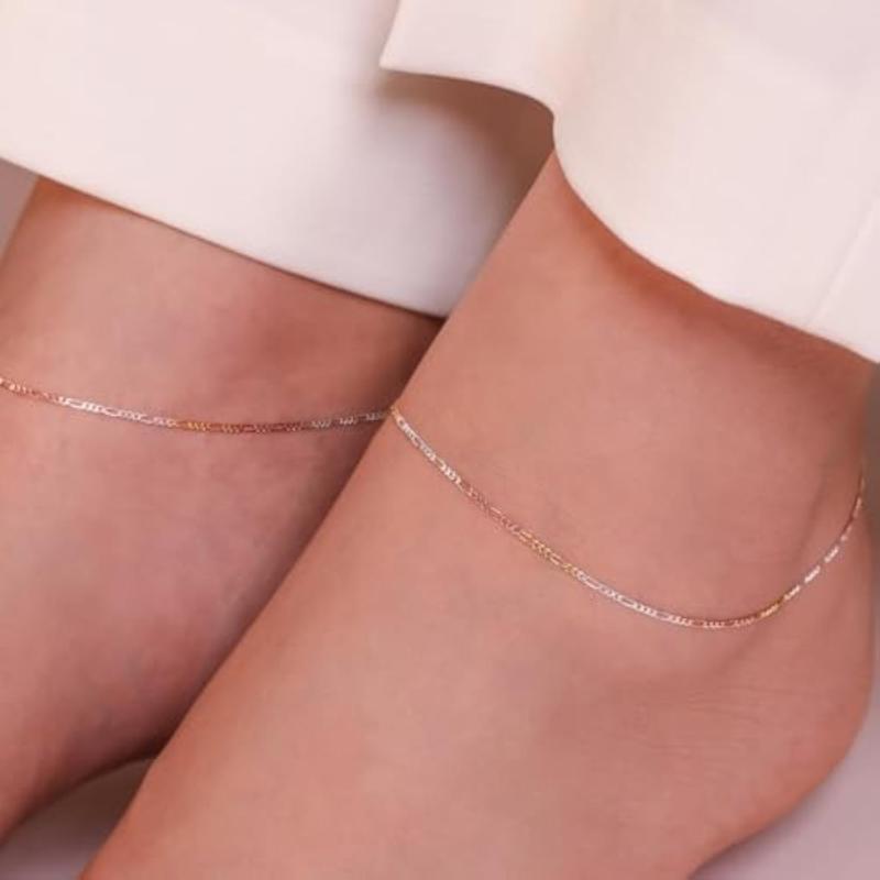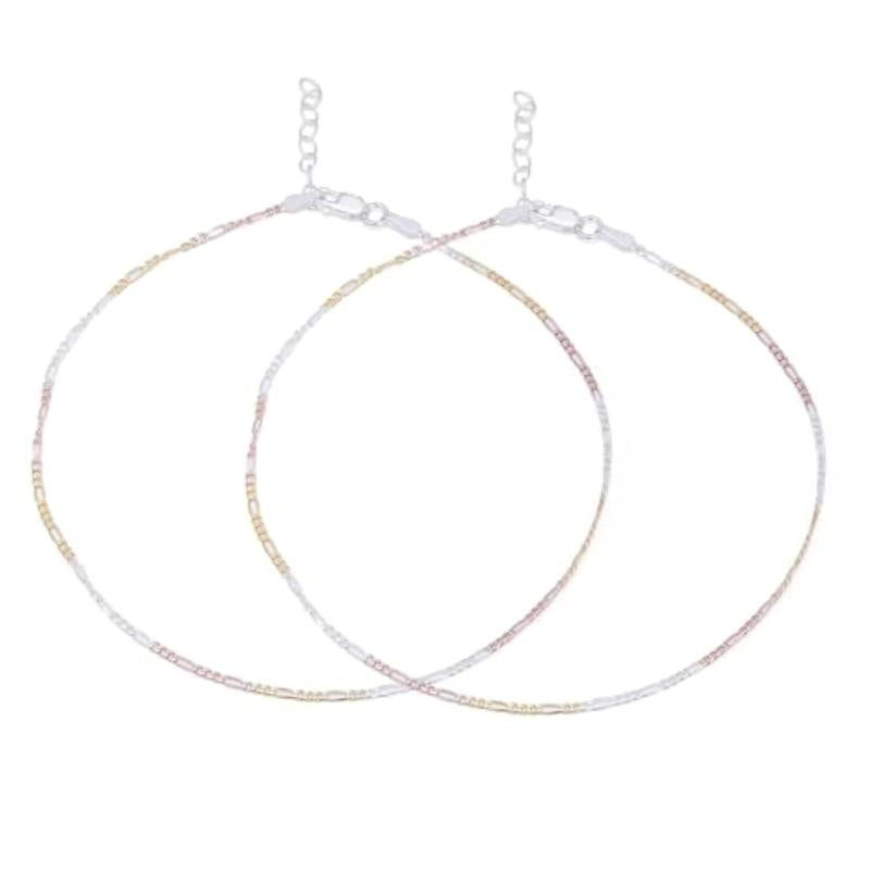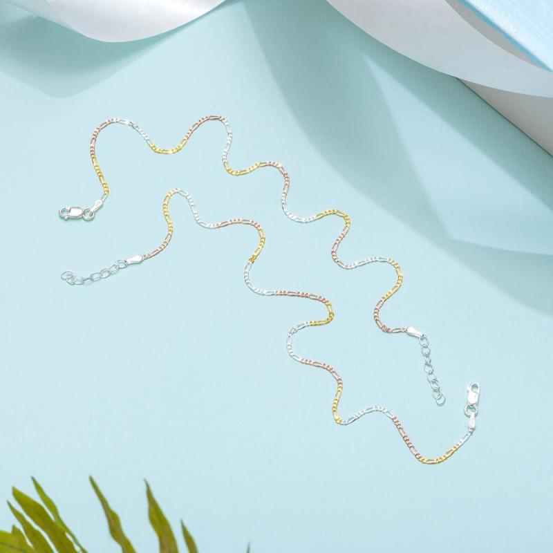 Add a touch of elegance to your ankle with this stunning 925 sterling silver triple tone chain anklet. The anklet features a minimalist design with rhodium and rose plating for a unique look.