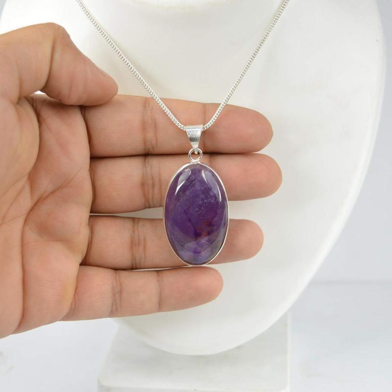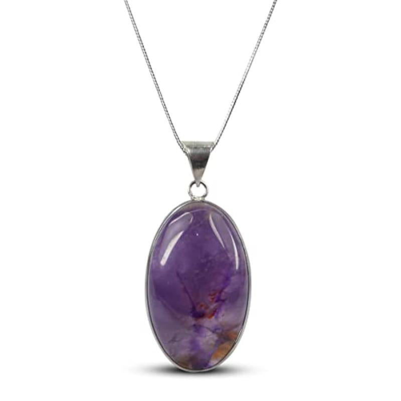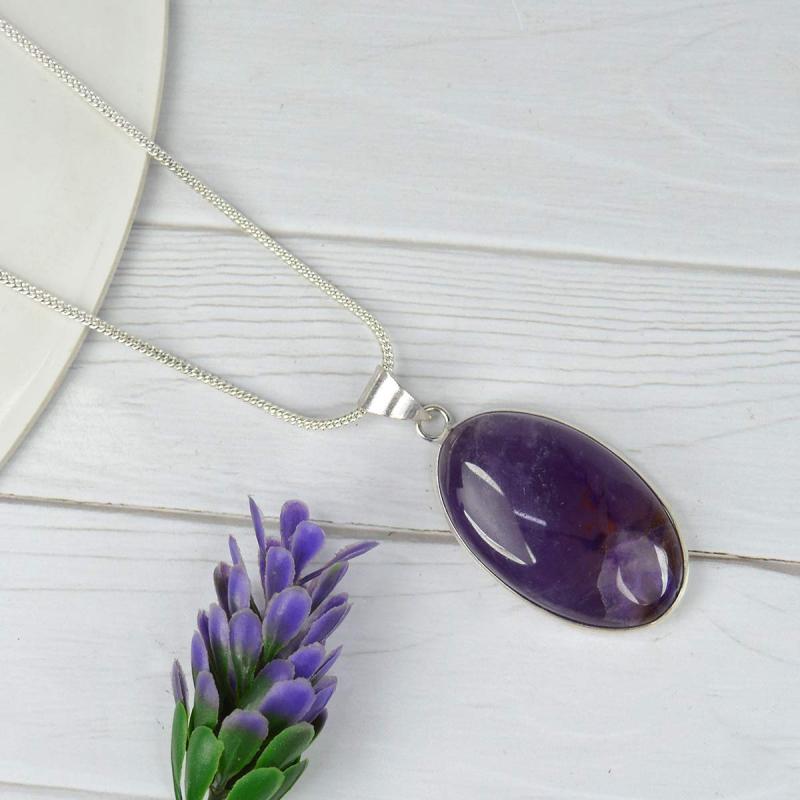 Beautiful AAA amethyst pendant with oval shape stone locket, perfect for healing and gemstone enthusiasts. Comes with a metal chain for easy wear.