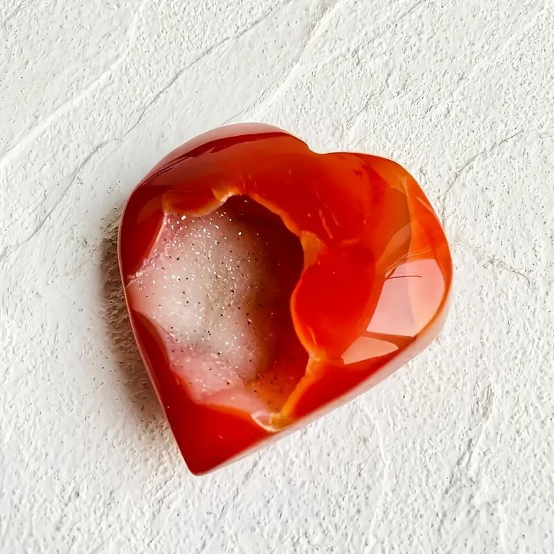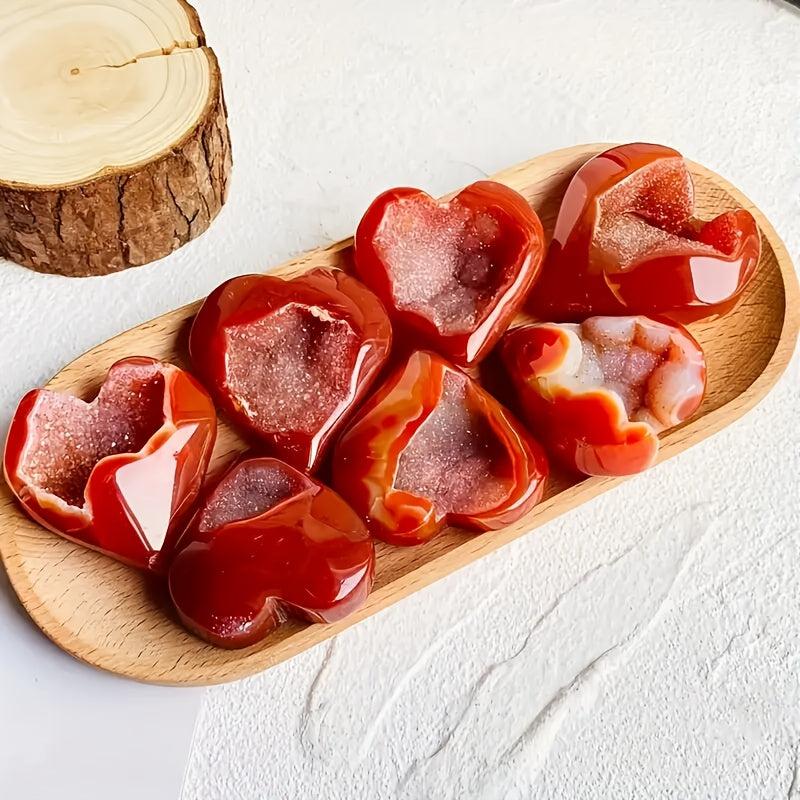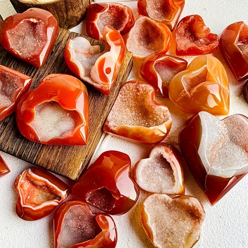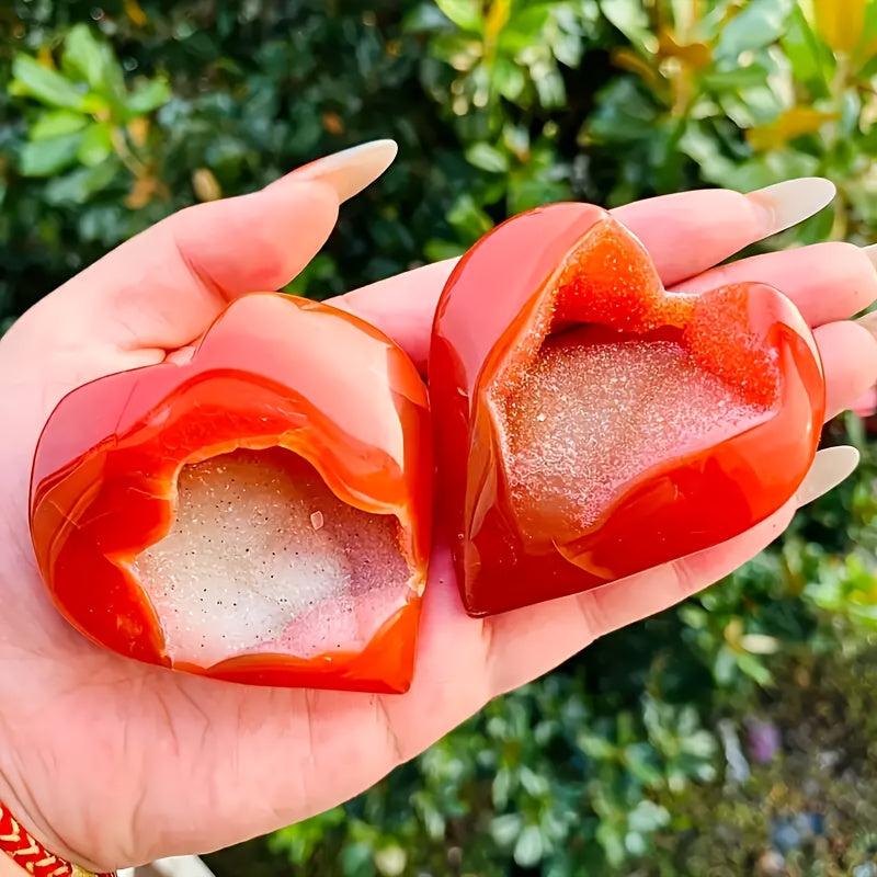 Add a touch of bohemian charm to your home with this natural hollowed out red agate heart-shaped crystal cluster. Perfect for Christmas and Thanksgiving decor.