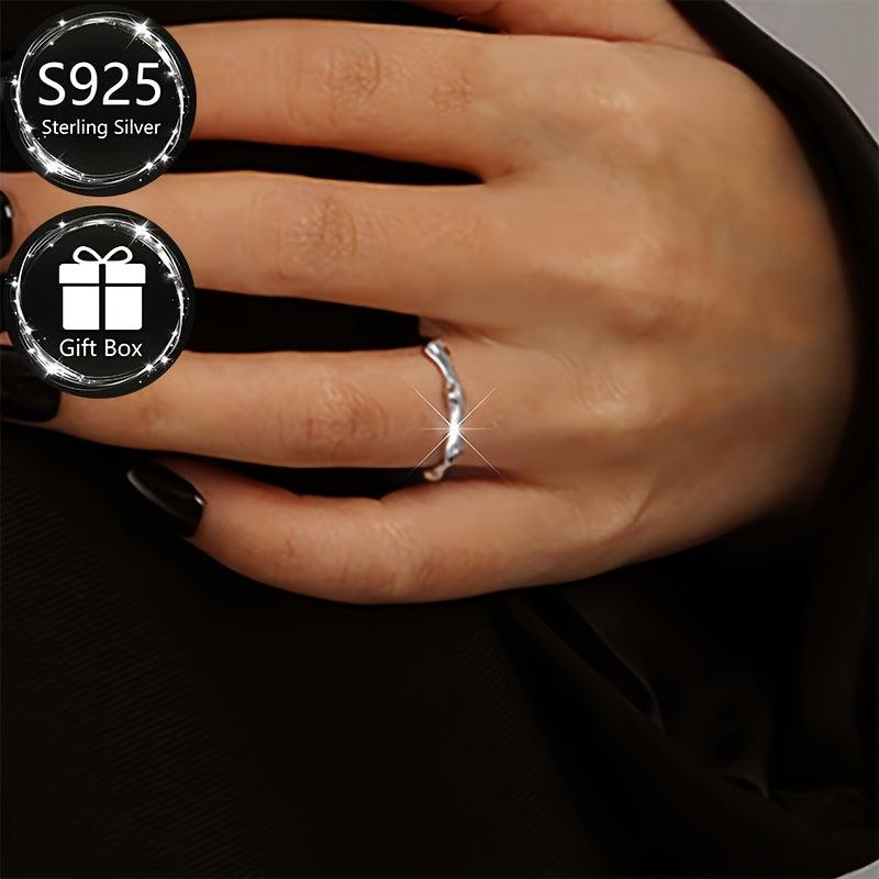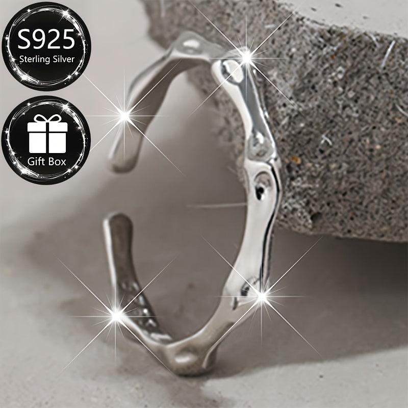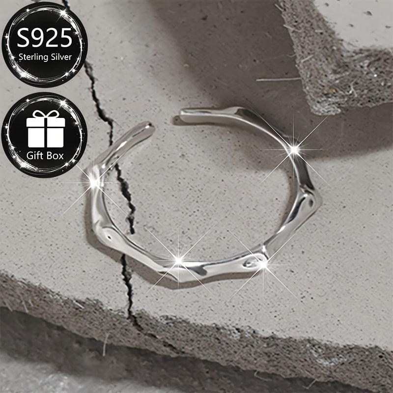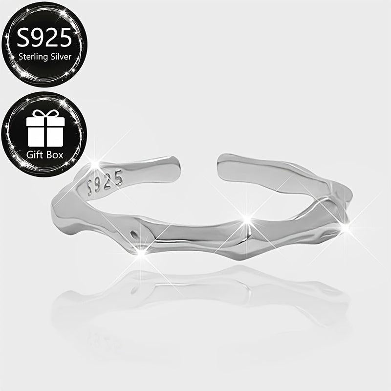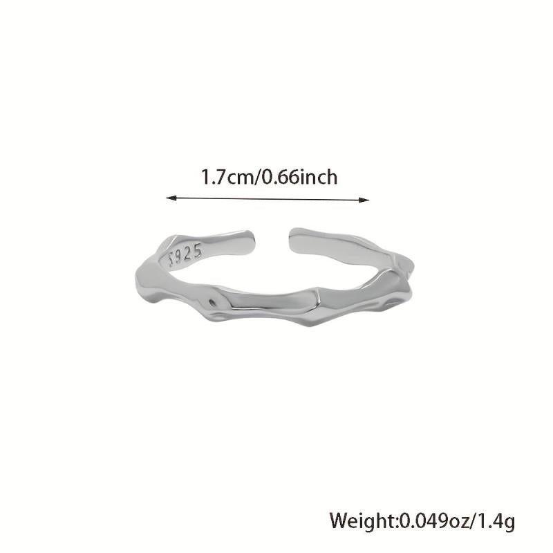 This stylish ring is made of 925 sterling silver with an adjustable design. It features a bamboo-inspired motif suitable for both daily wear and party occasions.