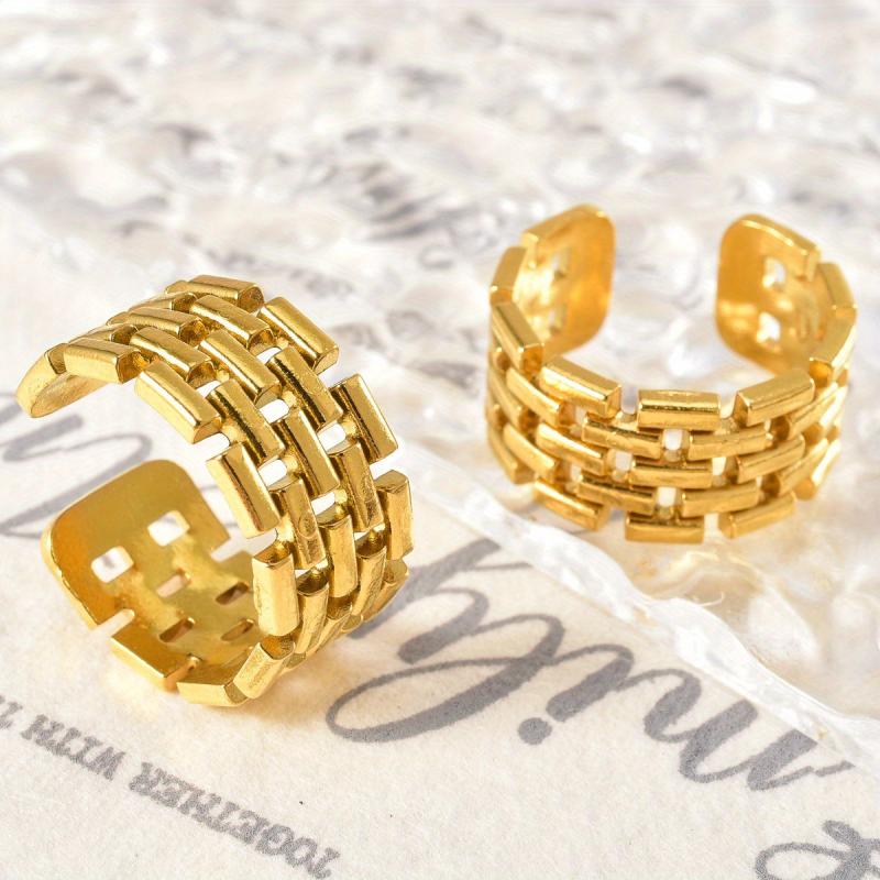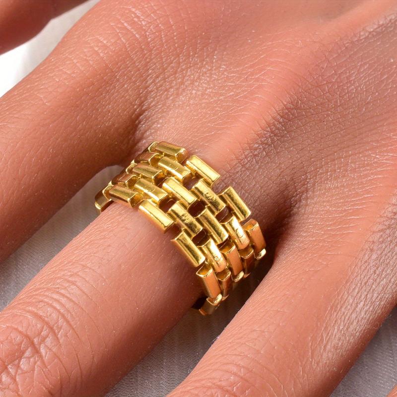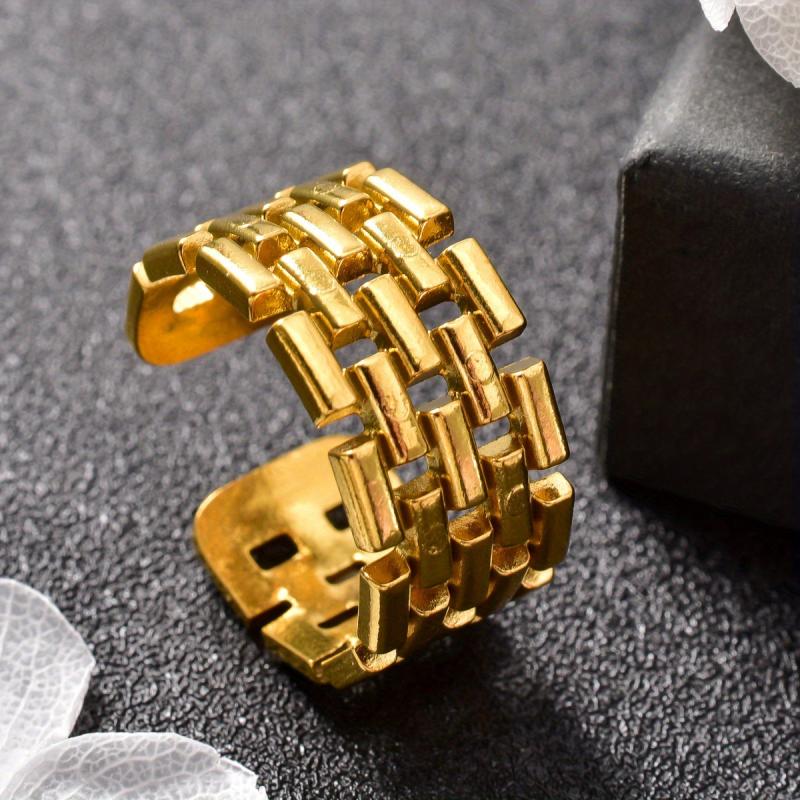 Add a touch of Middle Eastern inspiration to your look with this vintage adjustable chain link ring. Crafted from stainless steel in a golden tone, this unisex jewelry piece is perfect for casual attire and makes a great gift for men and women.