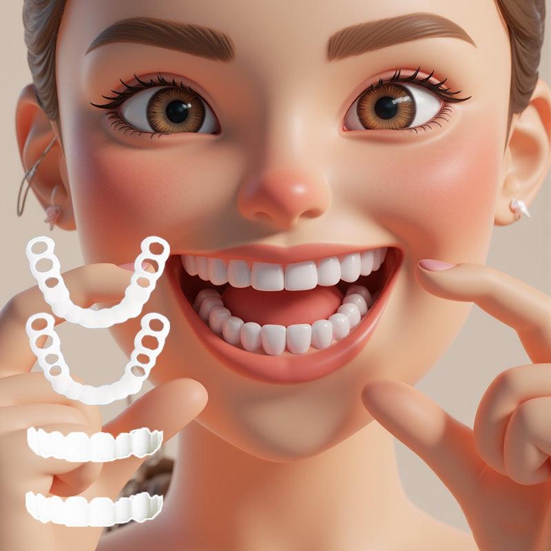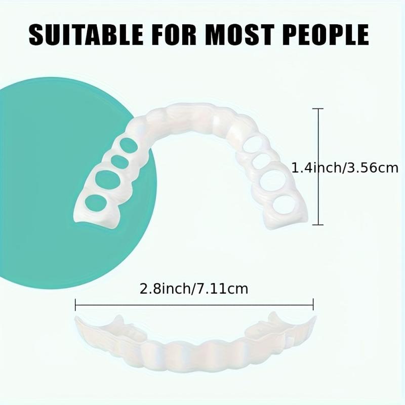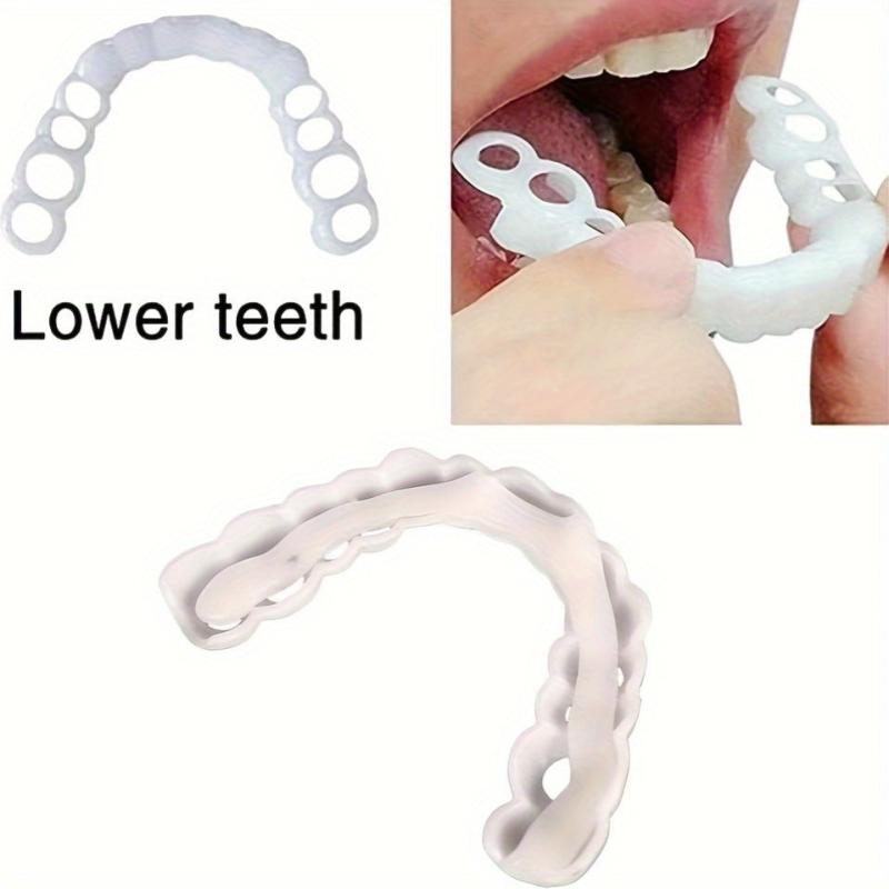 This set includes 4 adjustable clip-on dentures for natural upper and lower models. Suitable for both men and women in all seasons.