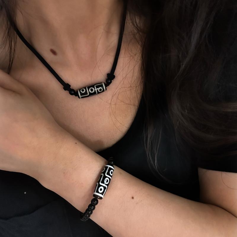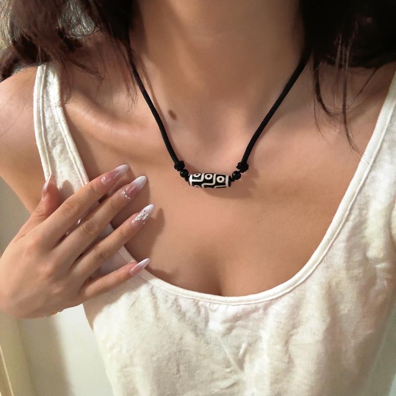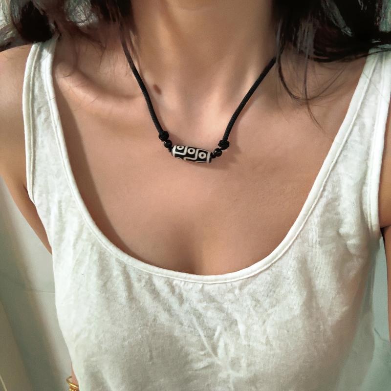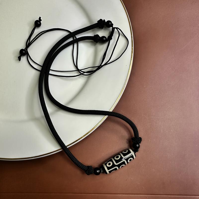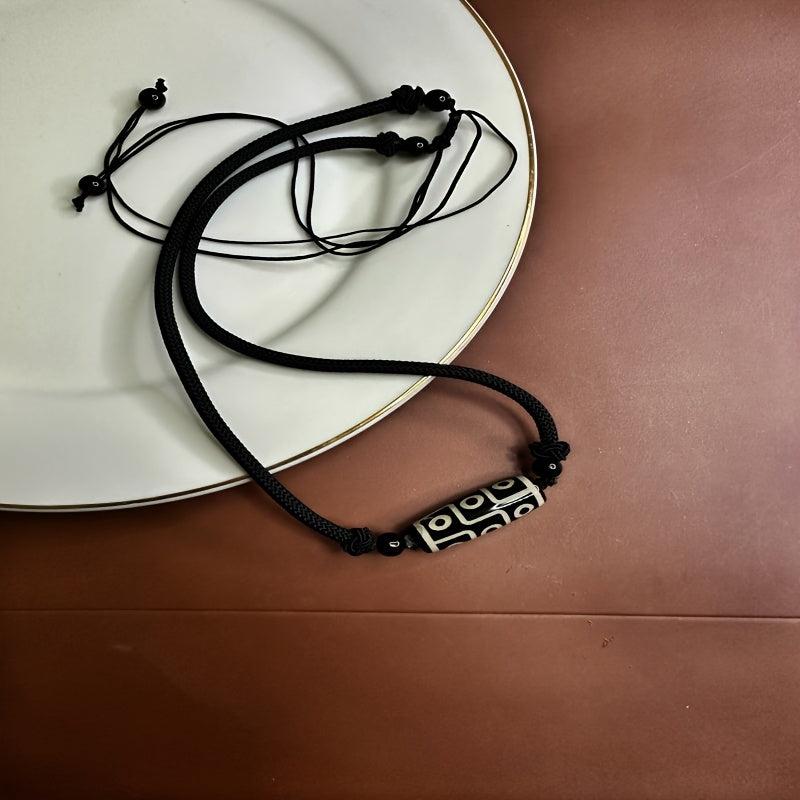 This braided rope necklace features a nine-eyed Dzi bead with beads, perfect for casual attire and gift giving.