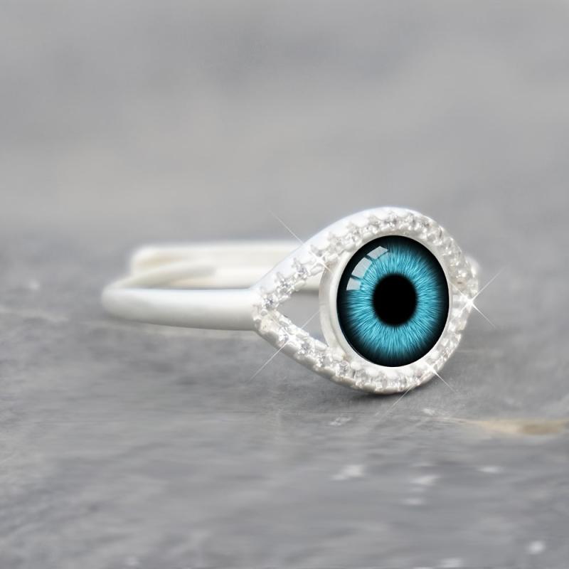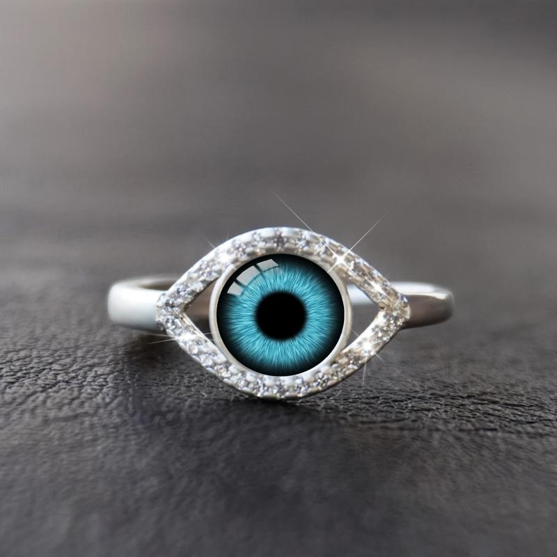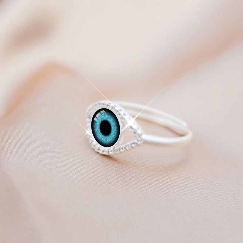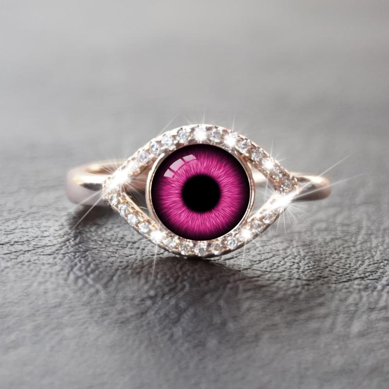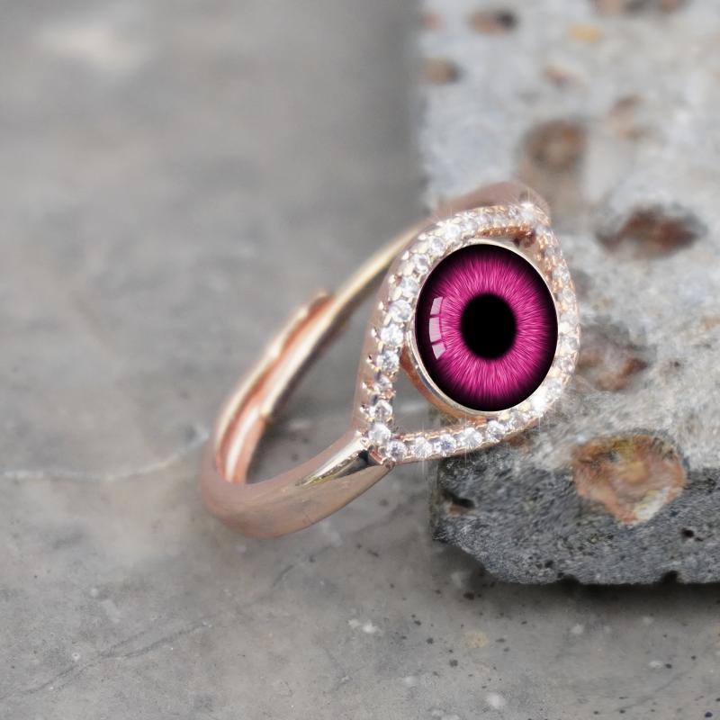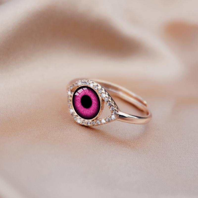 Minimalist eye ring featuring synthetic sapphire and pink stones, perfect for casual attire and parties. Ideal gift for December birthdays.