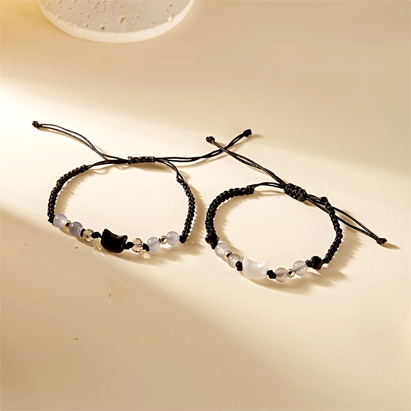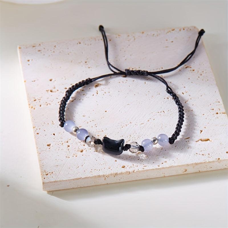 This whimsical cat charm bracelet features glass beads and is perfect for daily wear all year round.