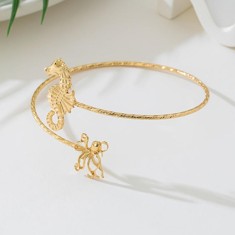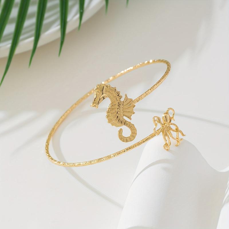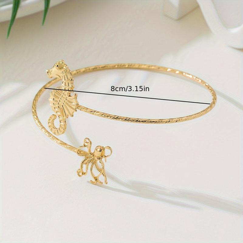 This ocean-inspired arm cuff is a stylish addition to your summer and casual outfits. Made of iron material, it features a beautiful seahorse design that adds a touch of elegance to your look.