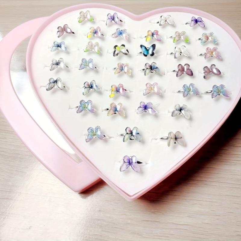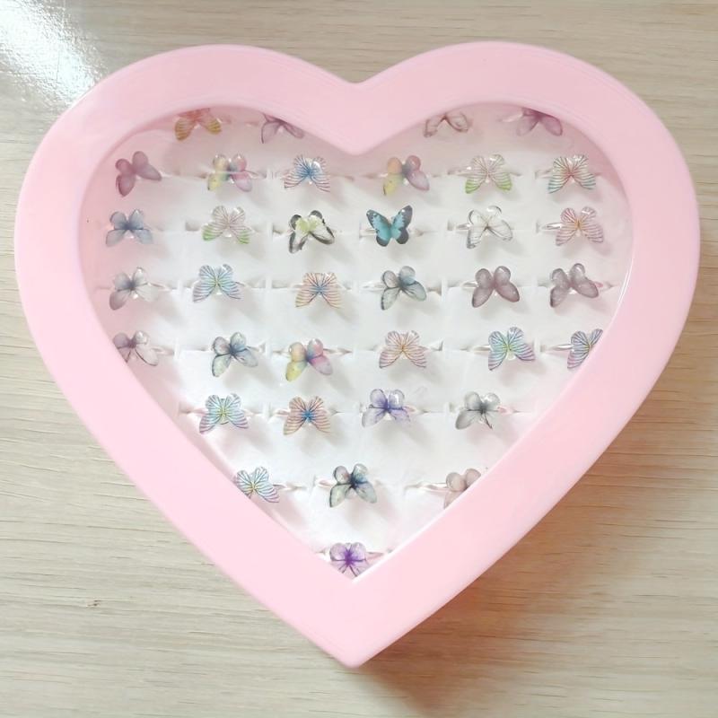 This set includes 36pcs of adjustable opening small rings featuring love hearts and dreamy butterfly designs. They make a perfect gift for birthdays and holidays.