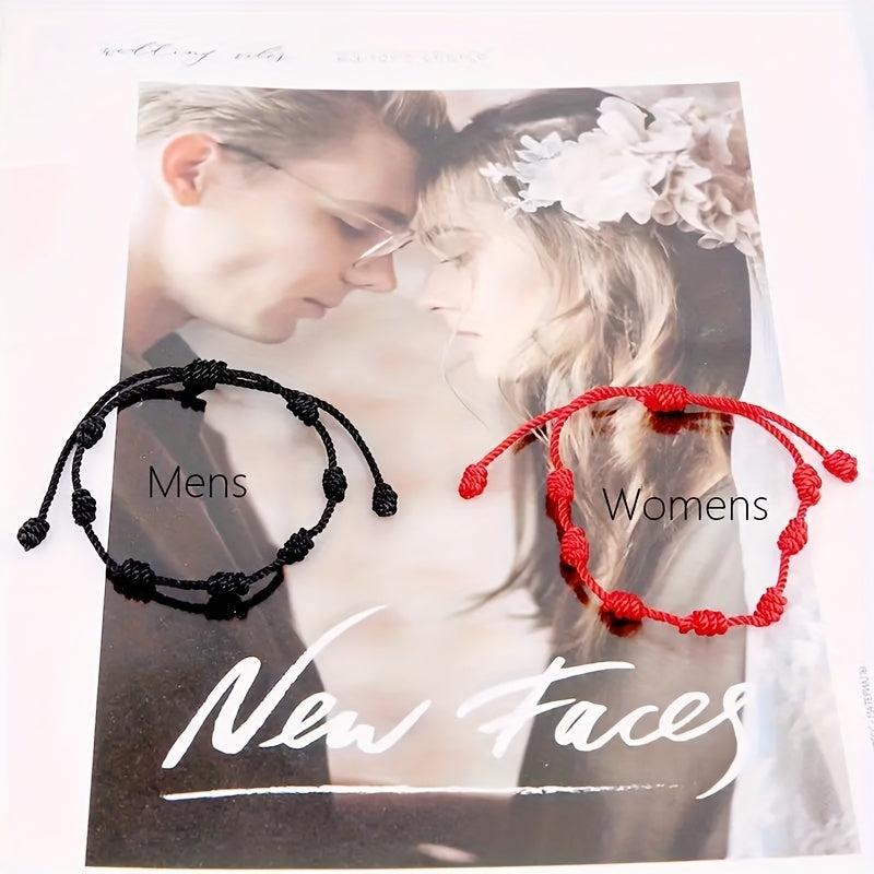 This set of adjustable couple bracelets features a vintage design perfect for Easter gift or peace offering. Each bracelet is crafted with seven marks, symbolizing luck and love.