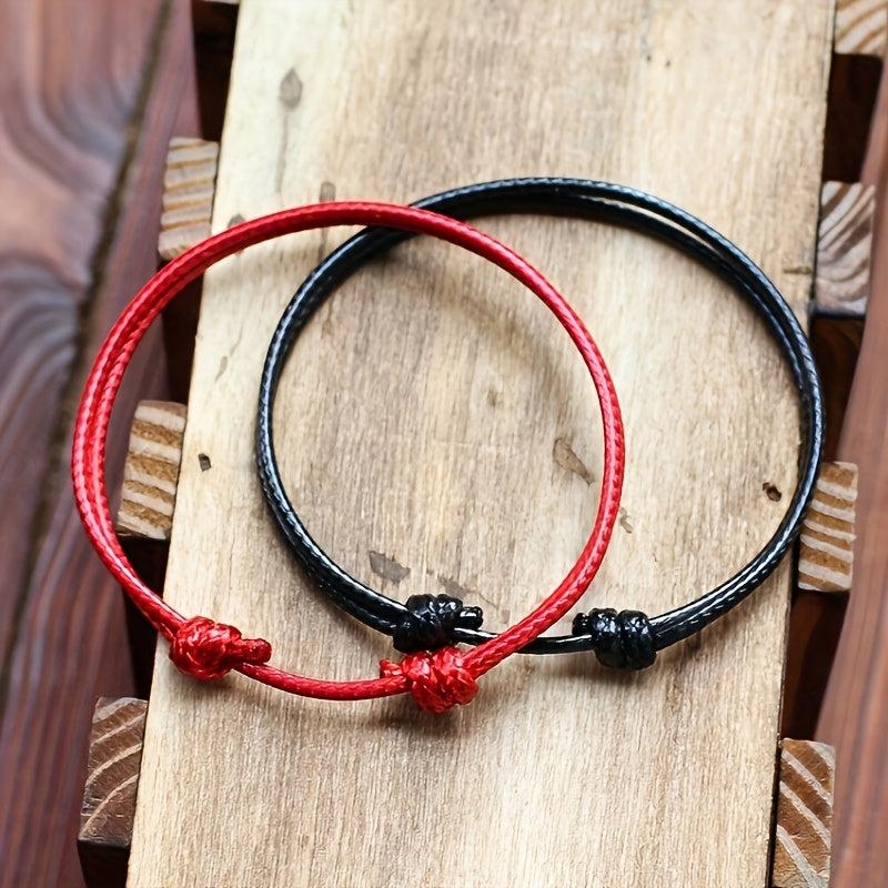 This adjustable wax cord bracelet features red beads, making it a stylish minimalist accessory perfect for everyday wear. The beaded design adds a touch of elegance to any outfit.