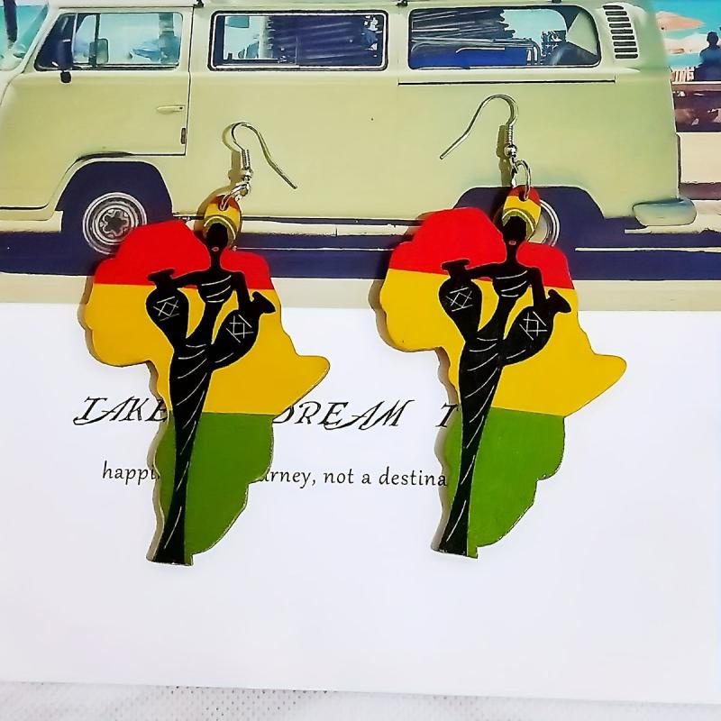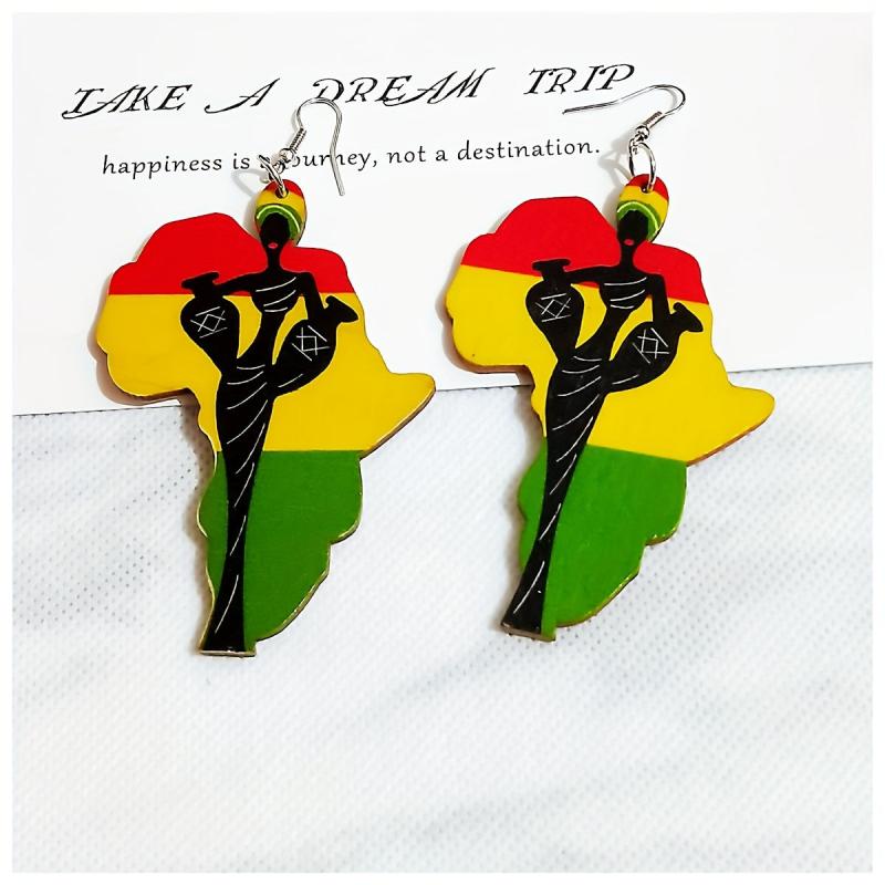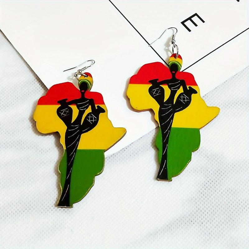 These fashionable acrylic earrings feature exaggerated African character patterns, perfect for adding a bohemian touch to your look.