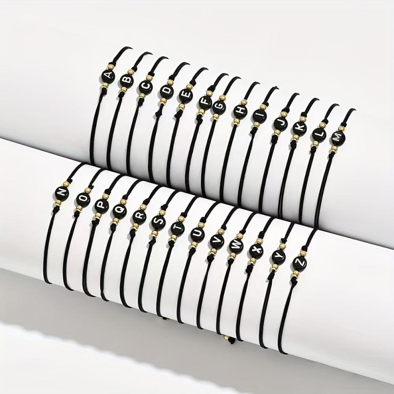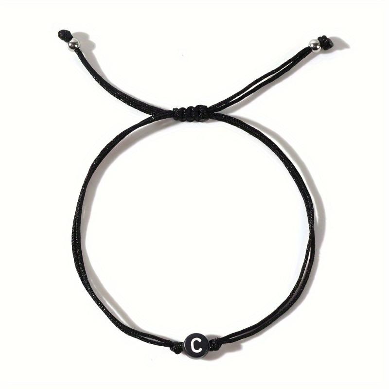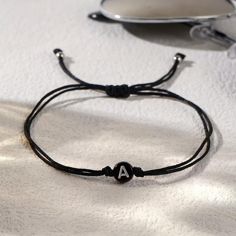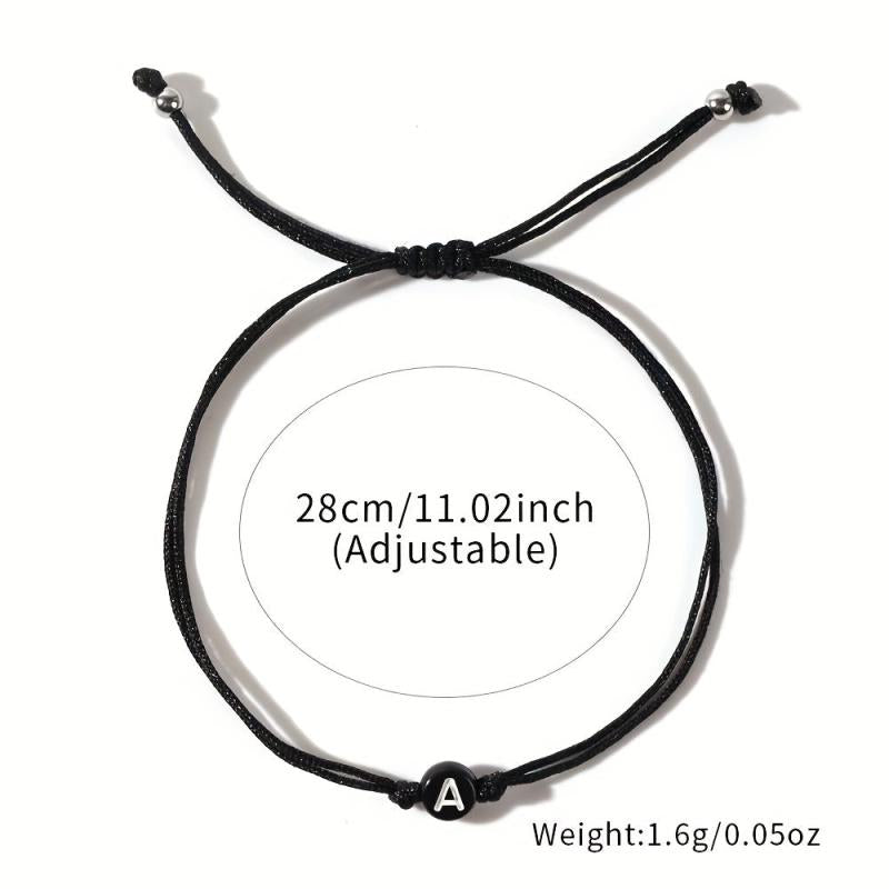 This beaded bracelet with alphabet charms is perfect for daily wear throughout the year. It features an adjustable woven rope style design made of synthetic fiber.