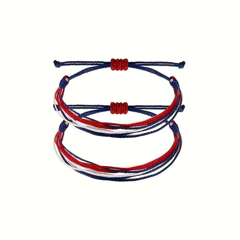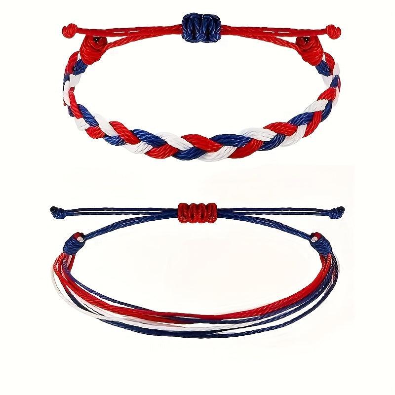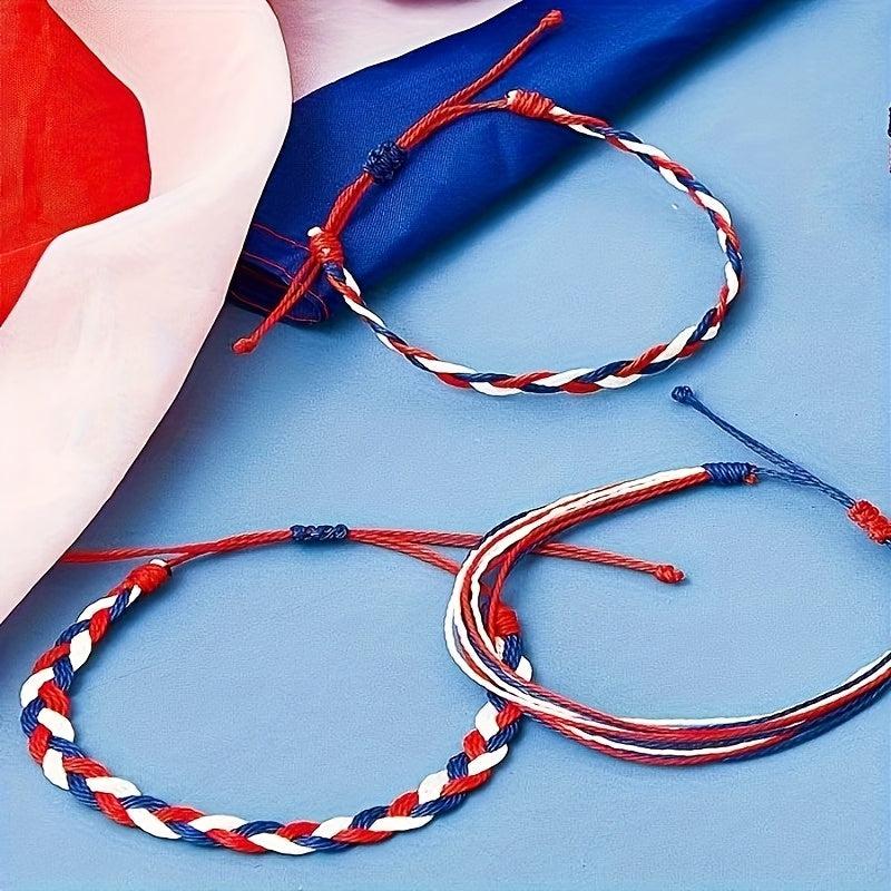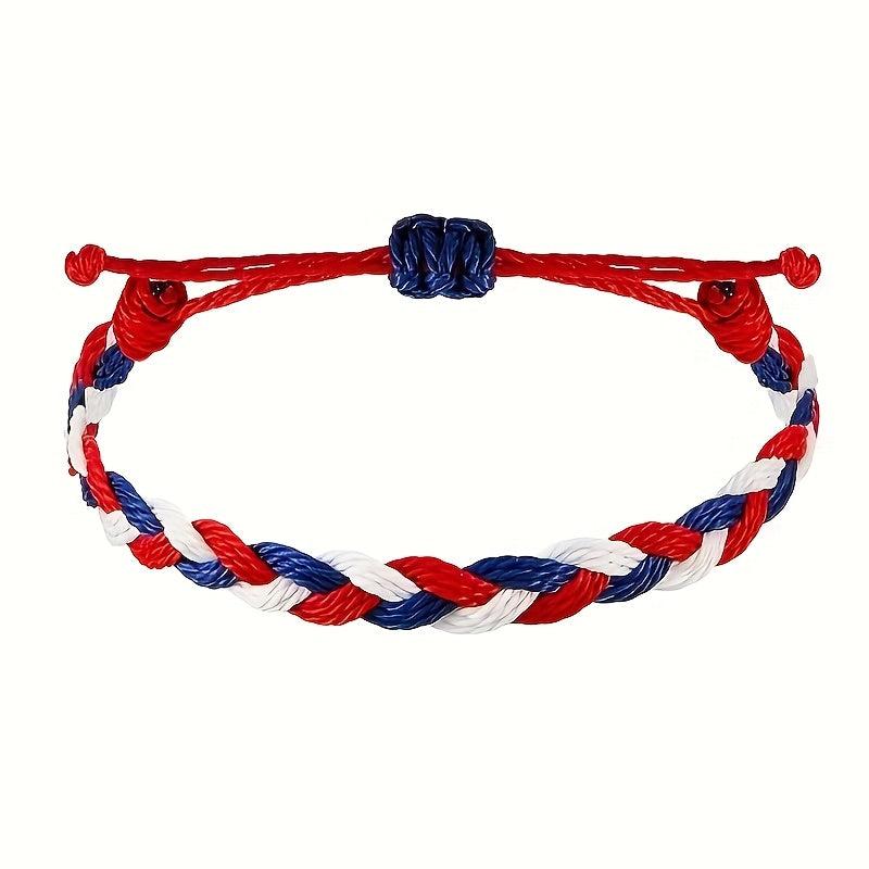 Show off your patriotic spirit with this retro American flag braided cord bracelet. The red and synthetic fiber textured weave adds a touch of durability and style. Perfect for everyday wear or as a thoughtful gift for women year-round.