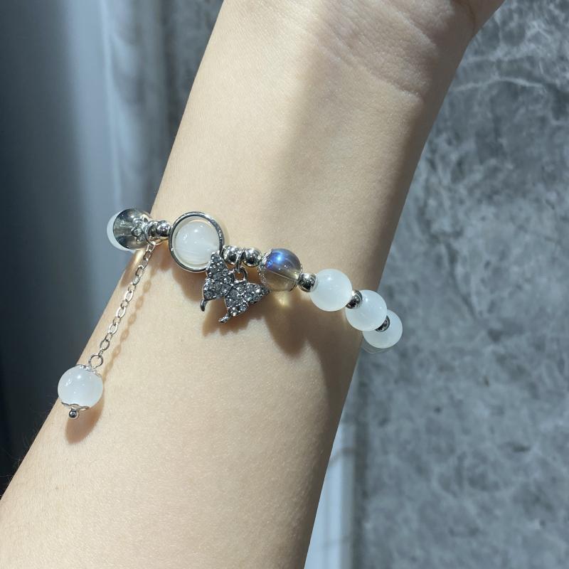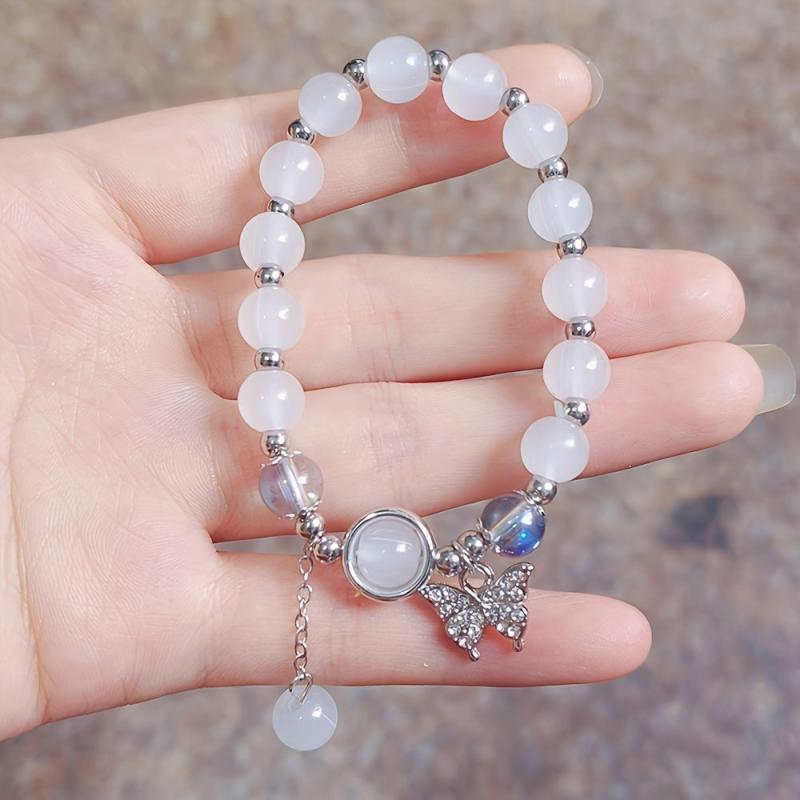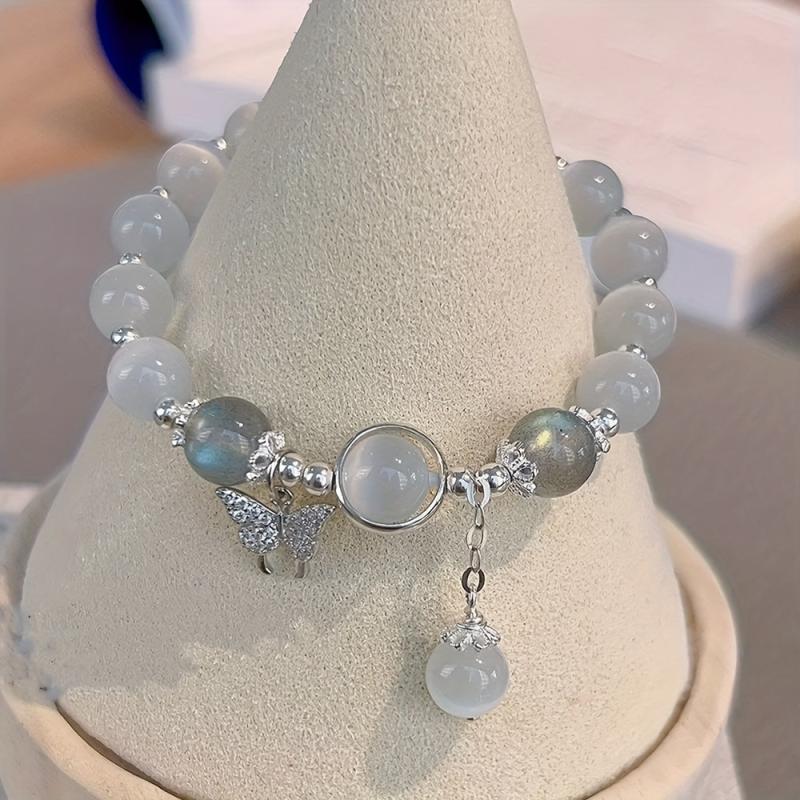 Elevate your style with this stylish bracelet featuring artificial gemstone beads and a beautiful flower pendant charm. Perfect for daily wear and makes a thoughtful Mother's Day gift.