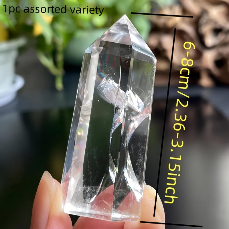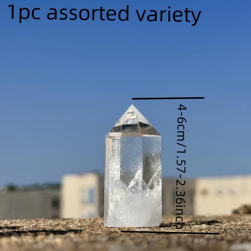 This set includes 1pc of assorted high-quality natural clear quartz obelisk crystal points. Ideal for home or office decorations and as a thoughtful gift.