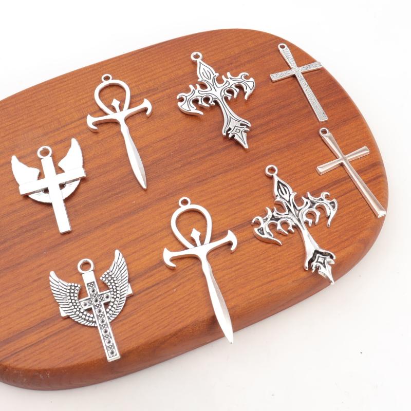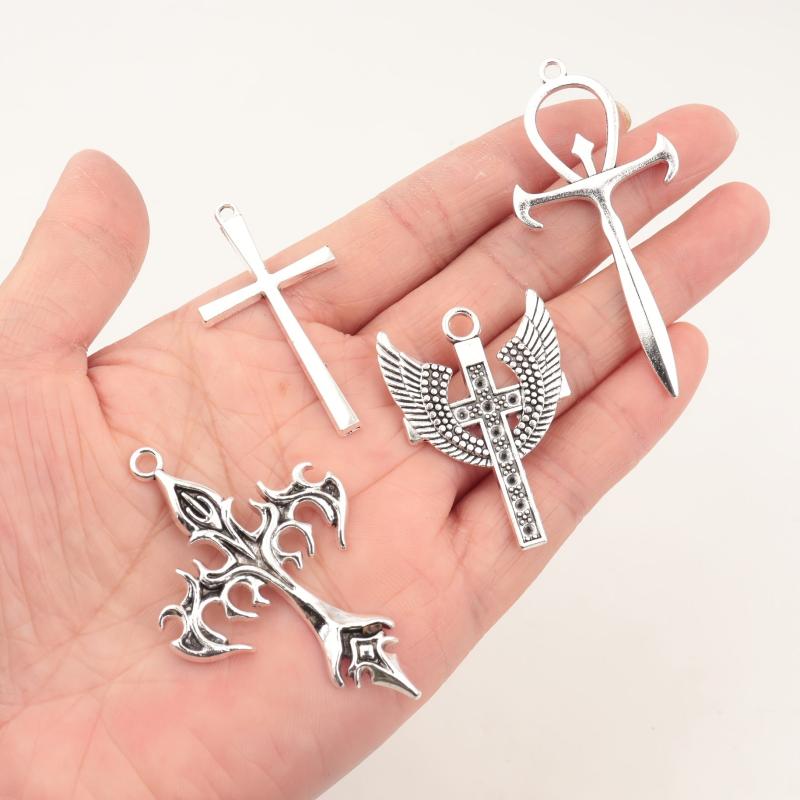 Add a touch of rock personality to your DIY jewelry with these antique silver-toned cross ornaments. Perfect for making necklaces and earrings.