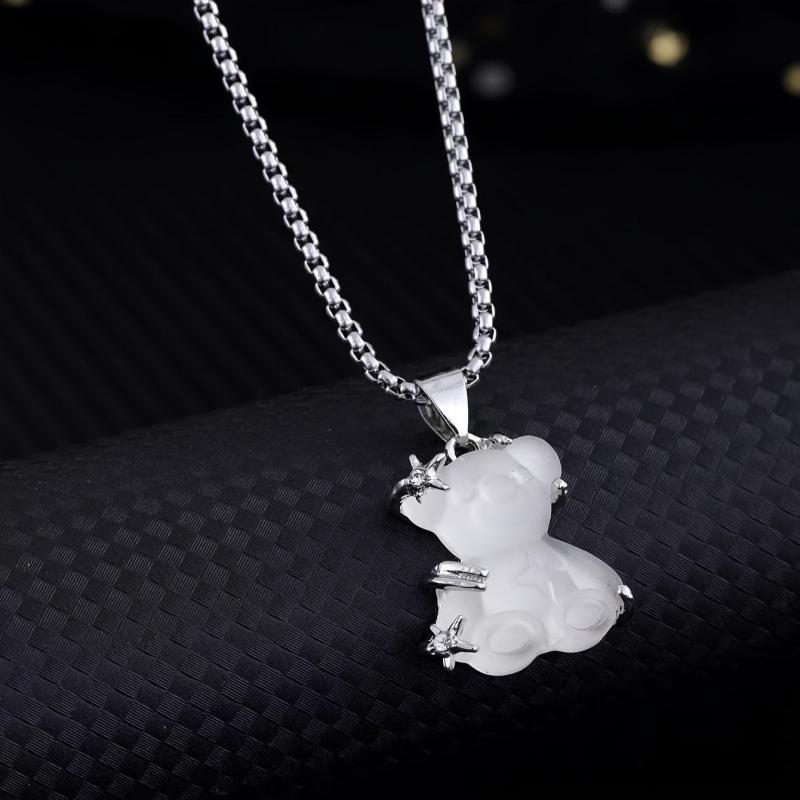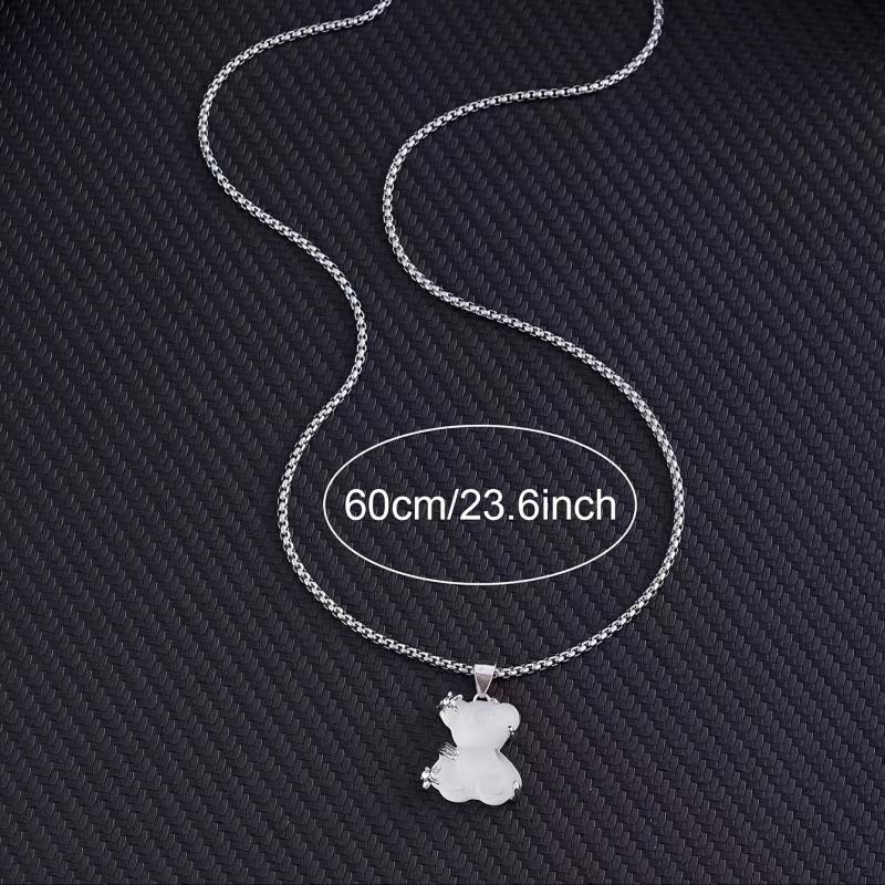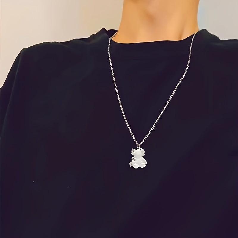 This couple necklace features a bear pendant made of titanium steel. Perfect for expressing love and connection.