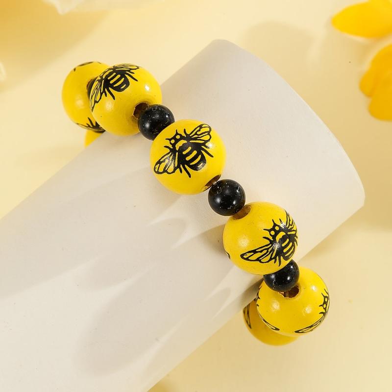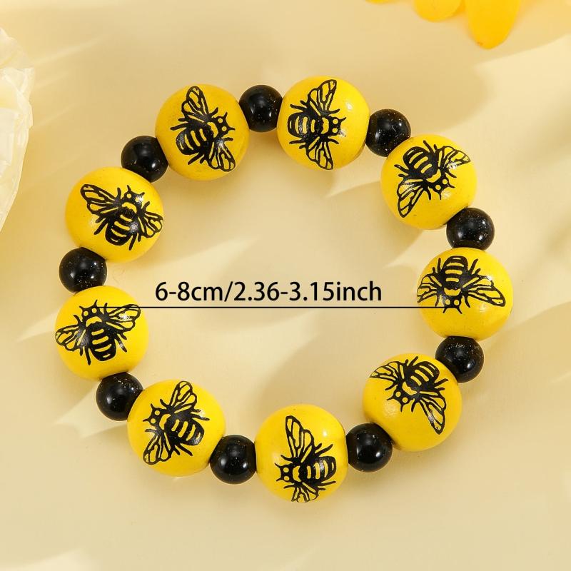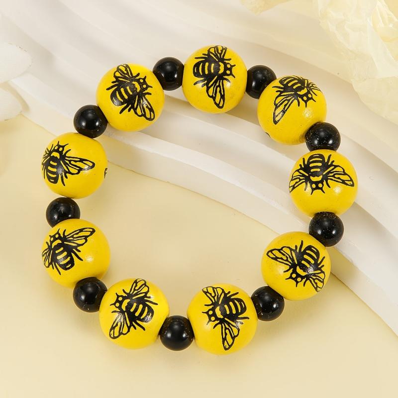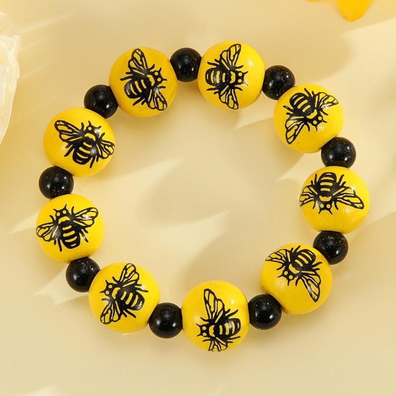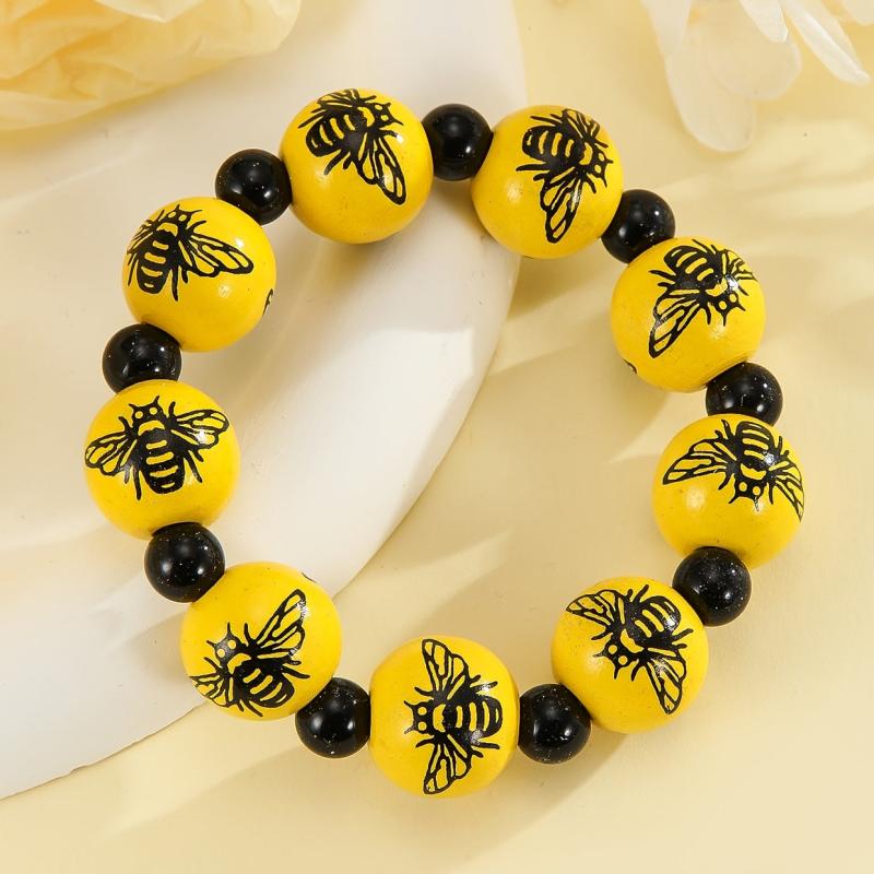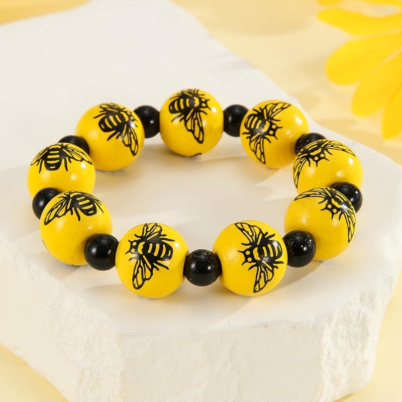 Add a touch of nature to your outfit with this bee-themed wooden bead bracelet featuring a vibrant yellow bee print. Ideal for spring and summer, this stretchy jewelry is perfect for vacations, parties, or casual attire.