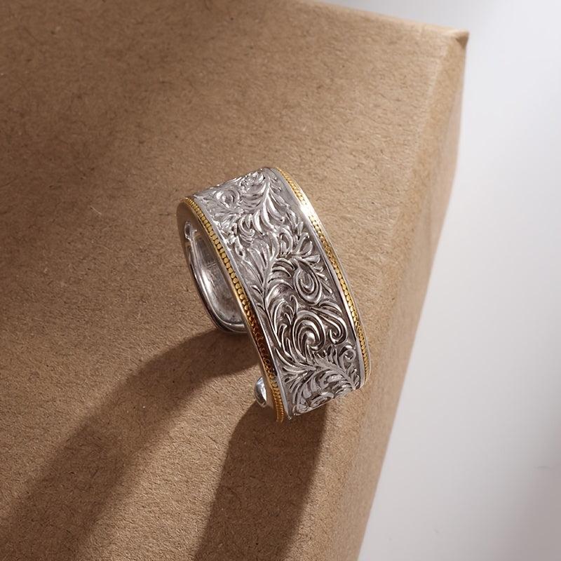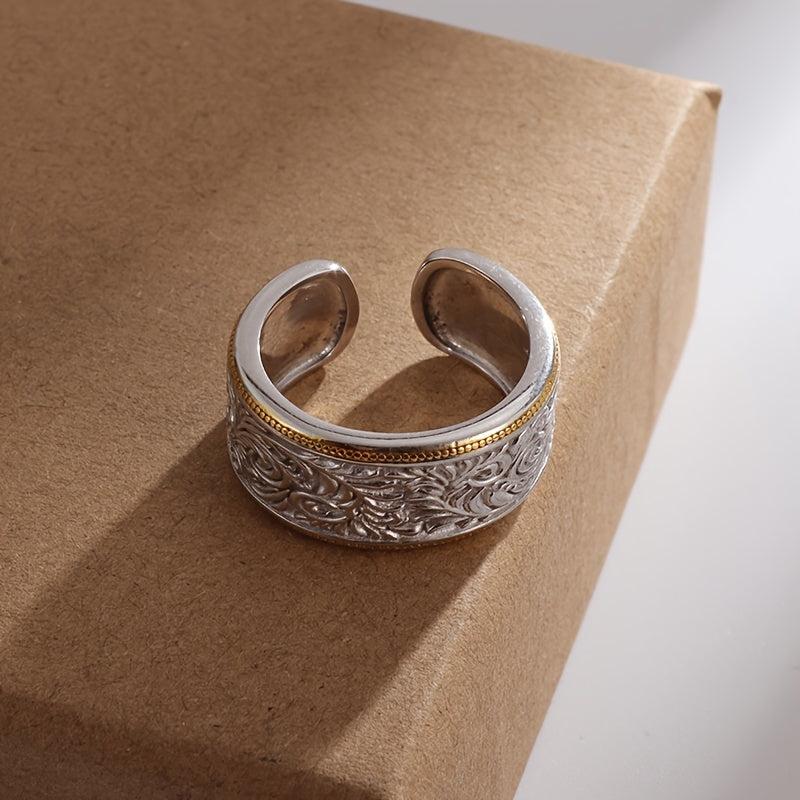 This versatile ring features a floral pattern design that is perfect for daily wear or parties. It has an open cuff style and is suitable for all seasons with no stone inlay.
