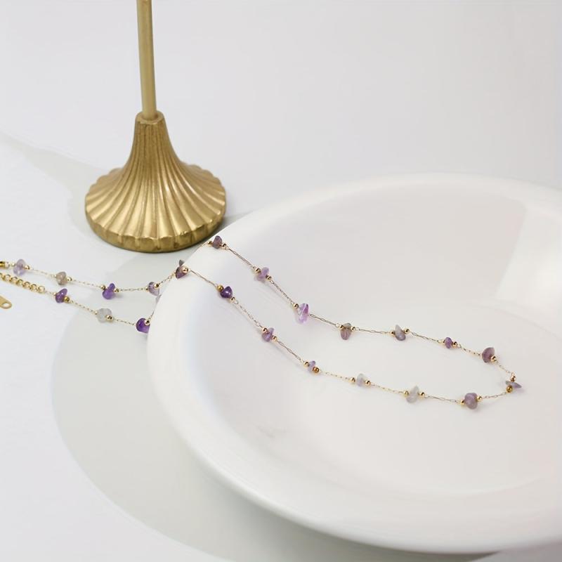 Elevate your style with this hypoallergenic natural amethyst necklace. The irregular pendant adds a touch of uniqueness to your look.